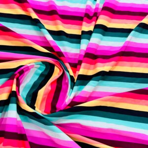 Rainbow Color Stripes Print Nylon Lycra Spandex Fabric 4 Way Stretch By Yard for swimwear dancewear gymwear sportwear dress skirt (243-8)