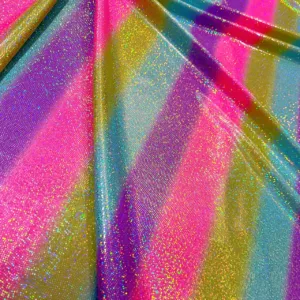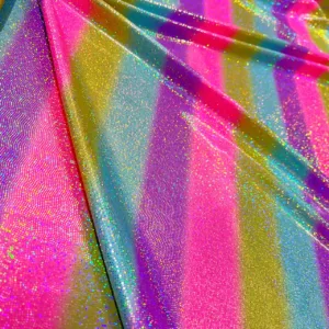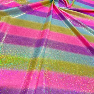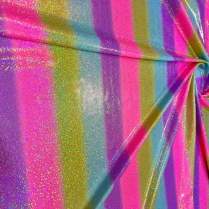 You are viewing Rainbow Metallic Foil Nylon Lycra Spandex Fabric 4 Way Stretch By The Yard for swimwear dancewear sportwear dress