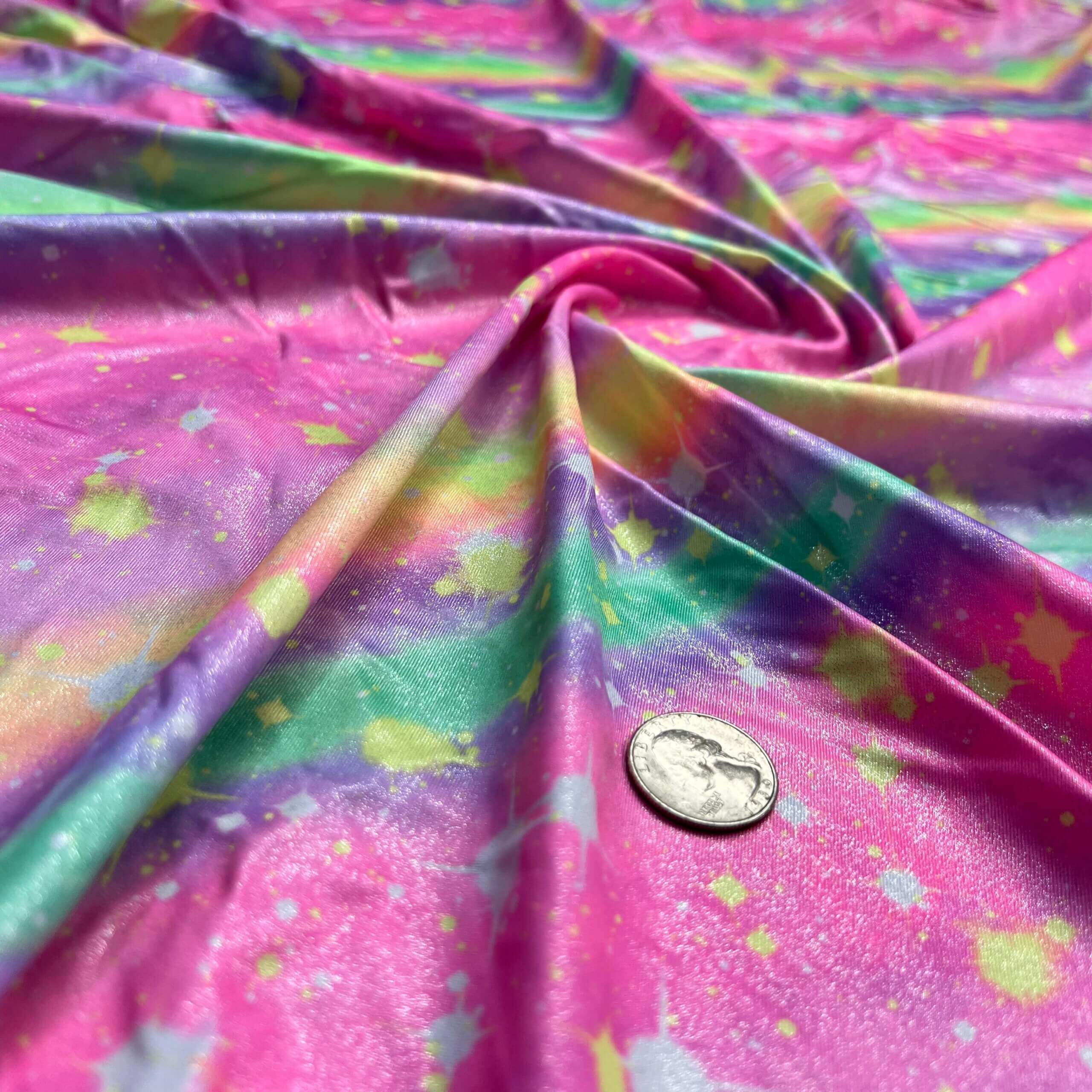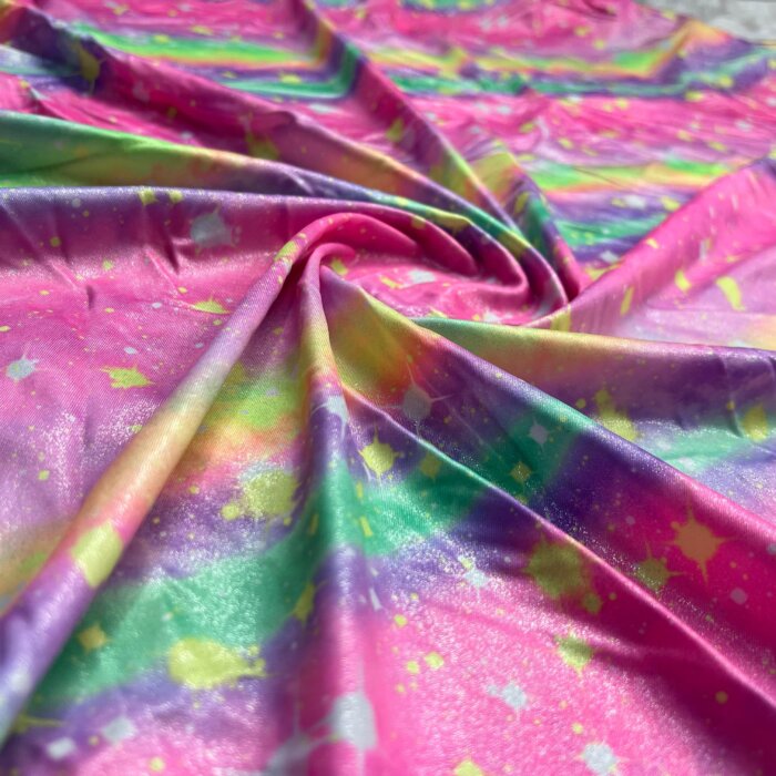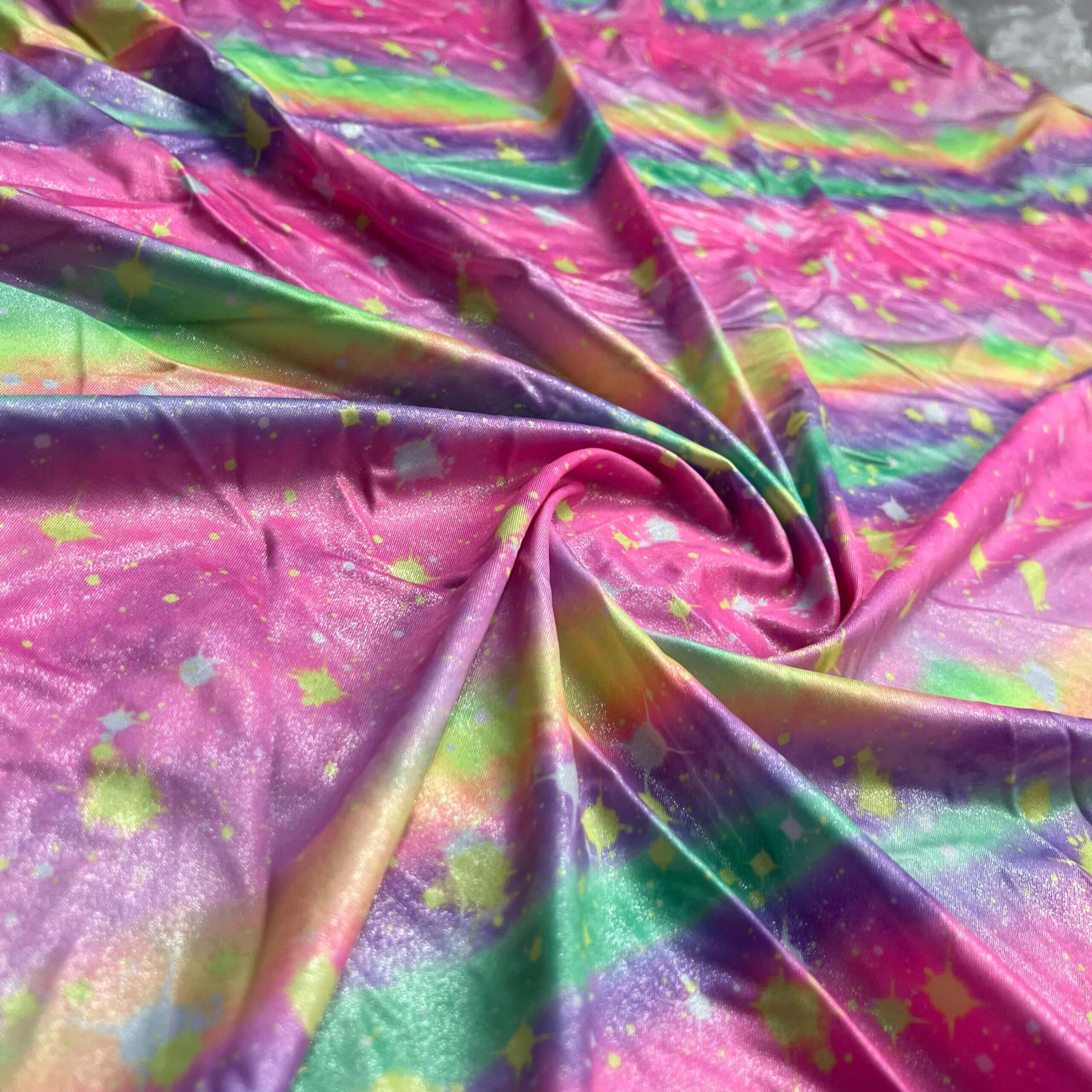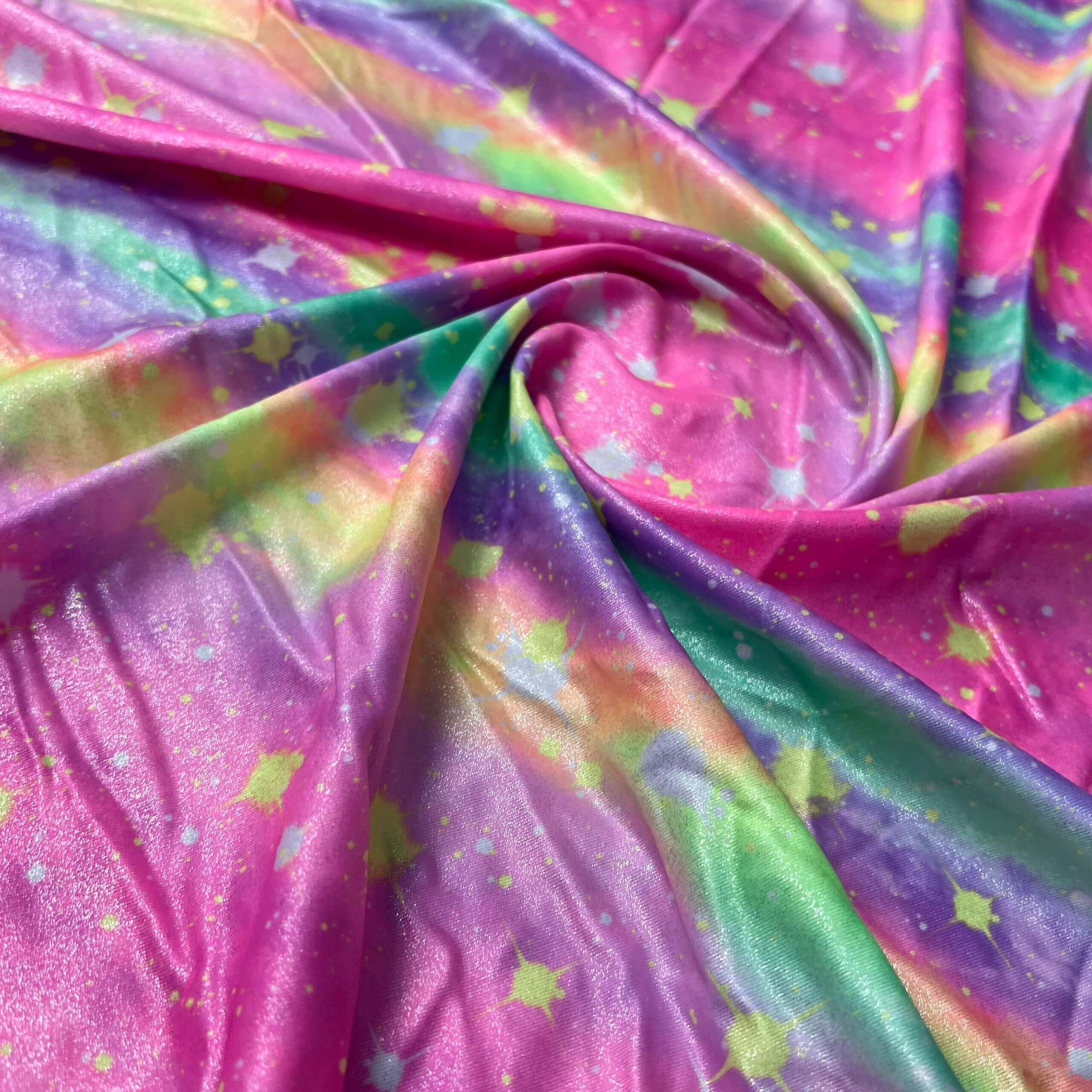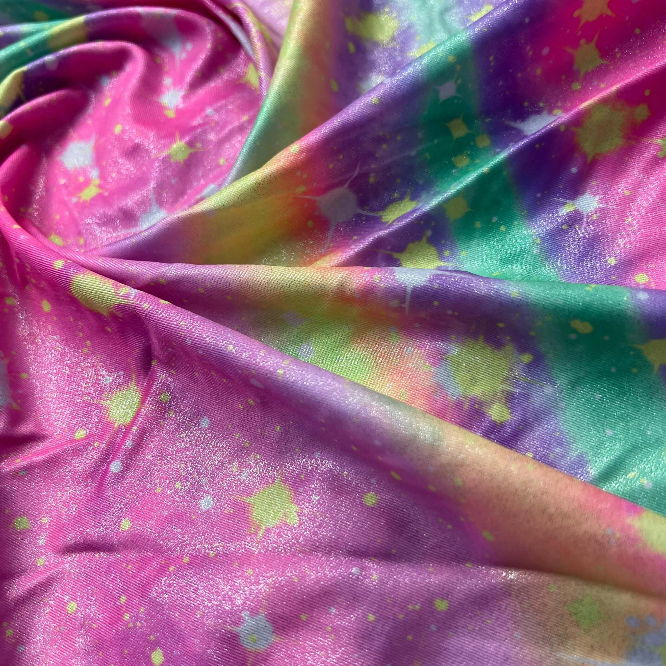 Rainbow Metallic with Splash of Colors Print Nylon Lycra Spandex Fabric 4 Way Stretch By Yard for swimwear dancewear gymwear sportwear dress (203-2)