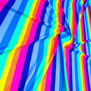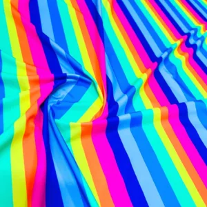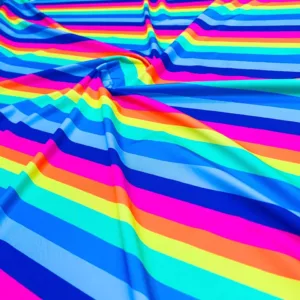 Rainbow Stripe Print Nylon Lycra Spandex Fabric 4 Way Stretch By Yard for swimwear dancewear gymwear sportwear dress (205-7)