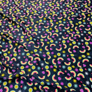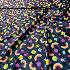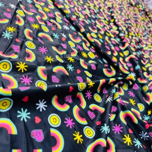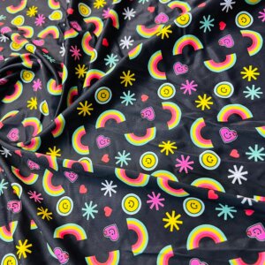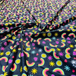 Rainbows and Emojis Black background Print Nylon Lycra Spandex Fabric 4 Way Stretch By Yard for swimwear dancewear gymwear sportwear dress (239-5)