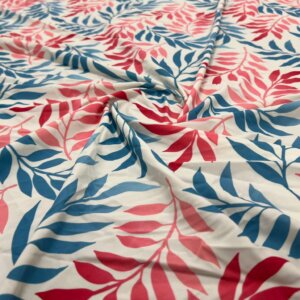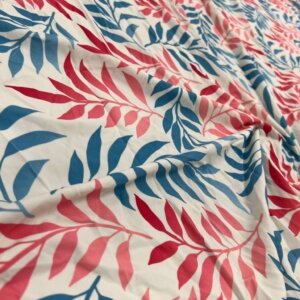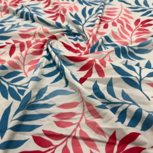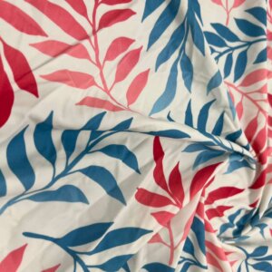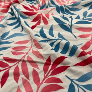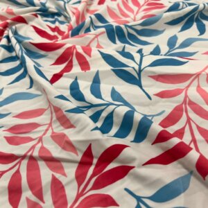 Red and Blue Leaves print Nylon Lycra Spandex Fabric 4 Way Strech by Yard for swimwear dancewear dress gymwear (204-4)