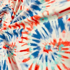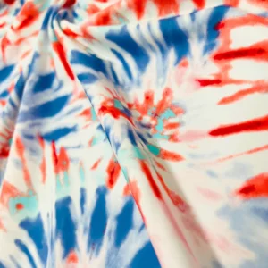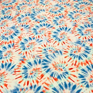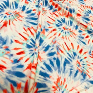 Red and Blue Tie Dye Print Nylon Spandex Fabric 4 Way Stretch By Yard for swimwear dancewear gymwear sportwear (203-11) (rs)