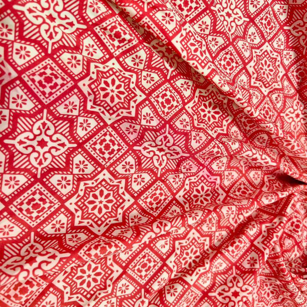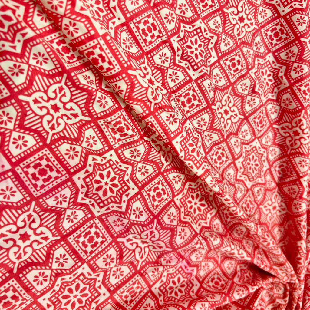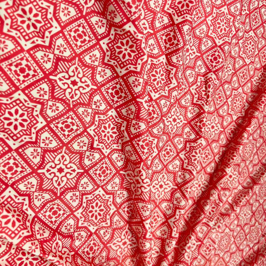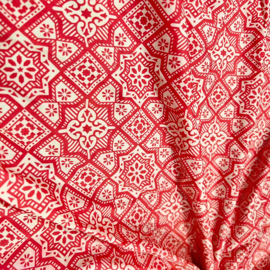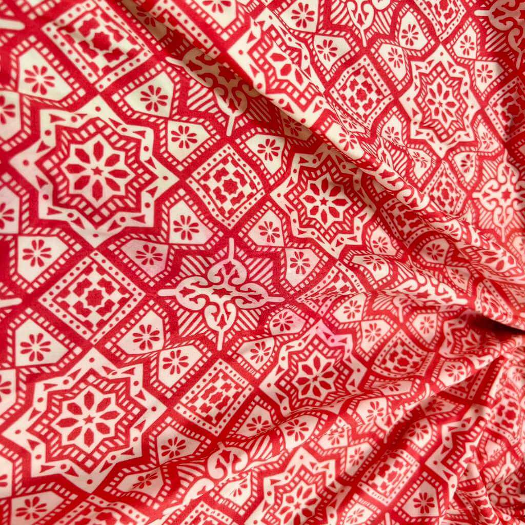 Red and White Mandala Print Nylon Spandex Fabric 4 Way Stretch for swimwear dancewear gymwear sportwear dress skirt