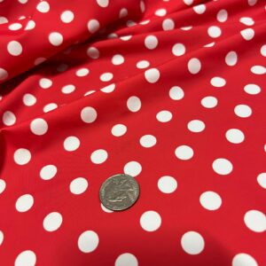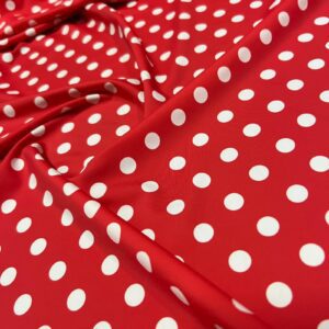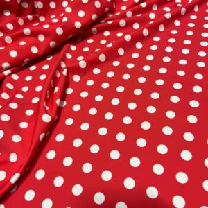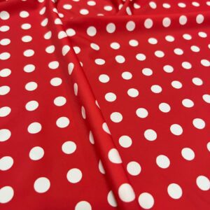 Red and White Polka Dots Print Nylon Lycra Spandex Fabric 4 Way Stretch for Swimwear (243-7)
