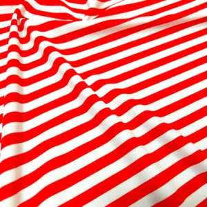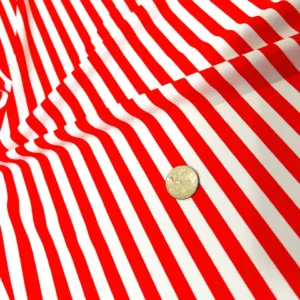 Deep Red and White Stripe Print Nylon Lycra Spandex Fabric 4 Way Stretch by Yard for swimwear dancewear sportwear (203-7)