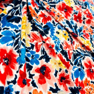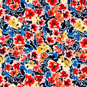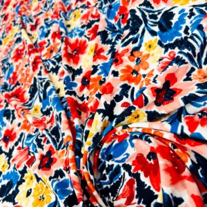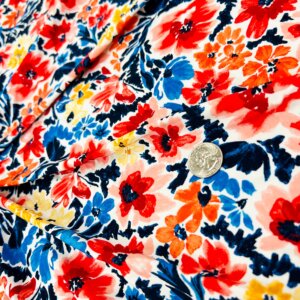 Red Blue and Yellow Flowers Print Nylon Lycra Spandex Fabric 4 Way Stretch By Yard for swimwear dancewear gymwear sportwear dress (239-7)