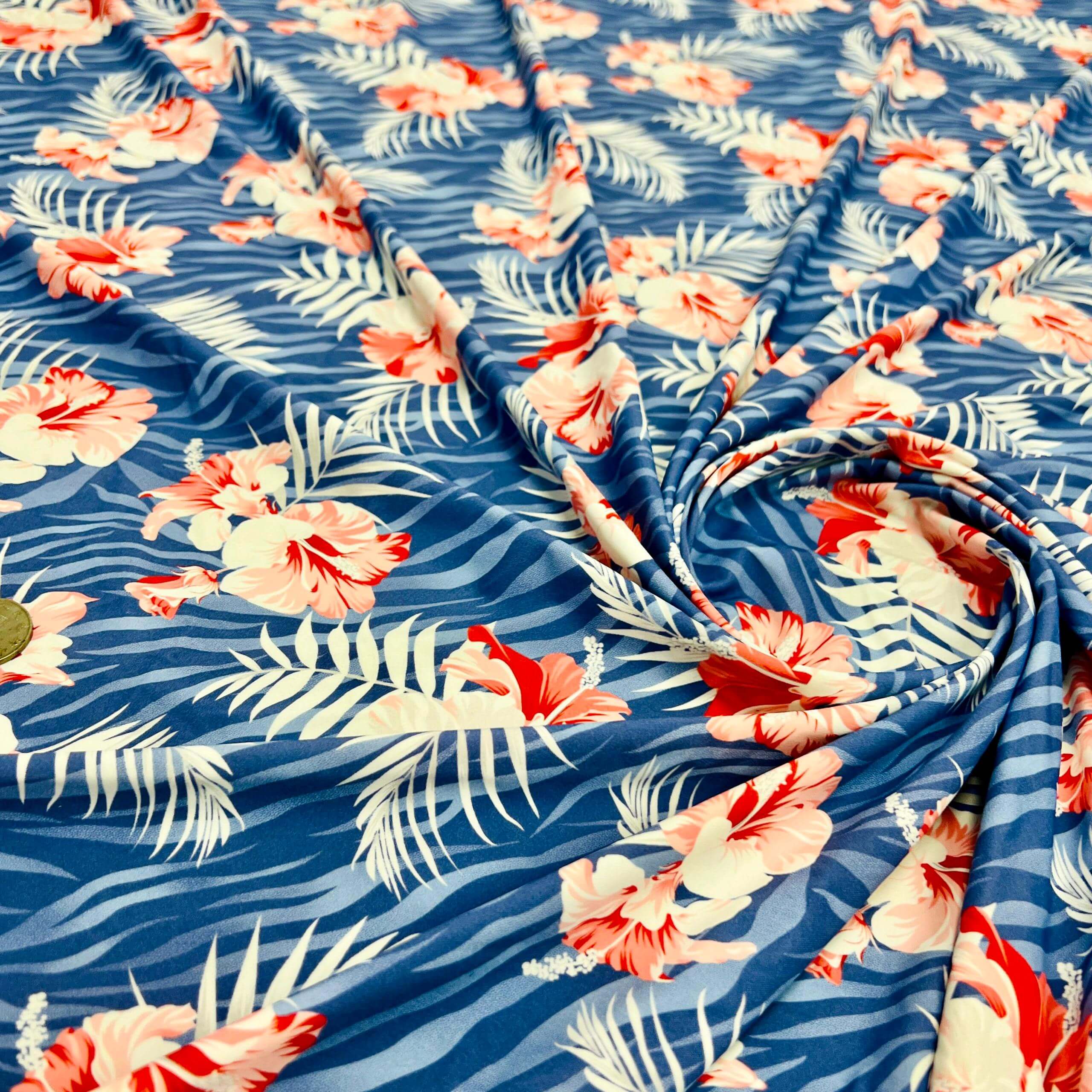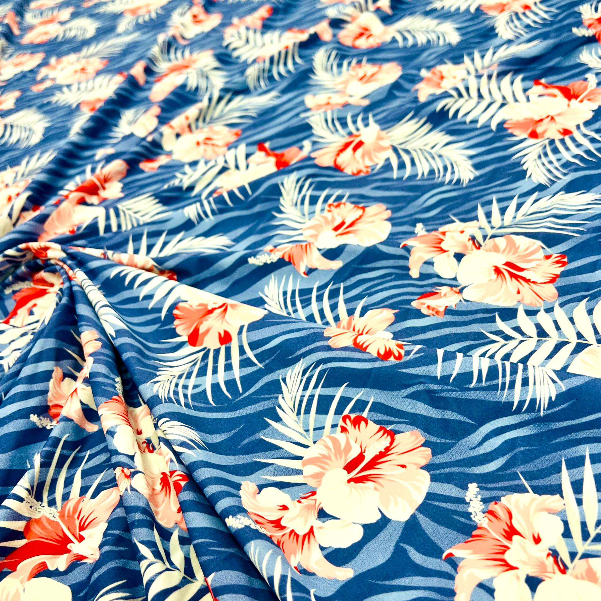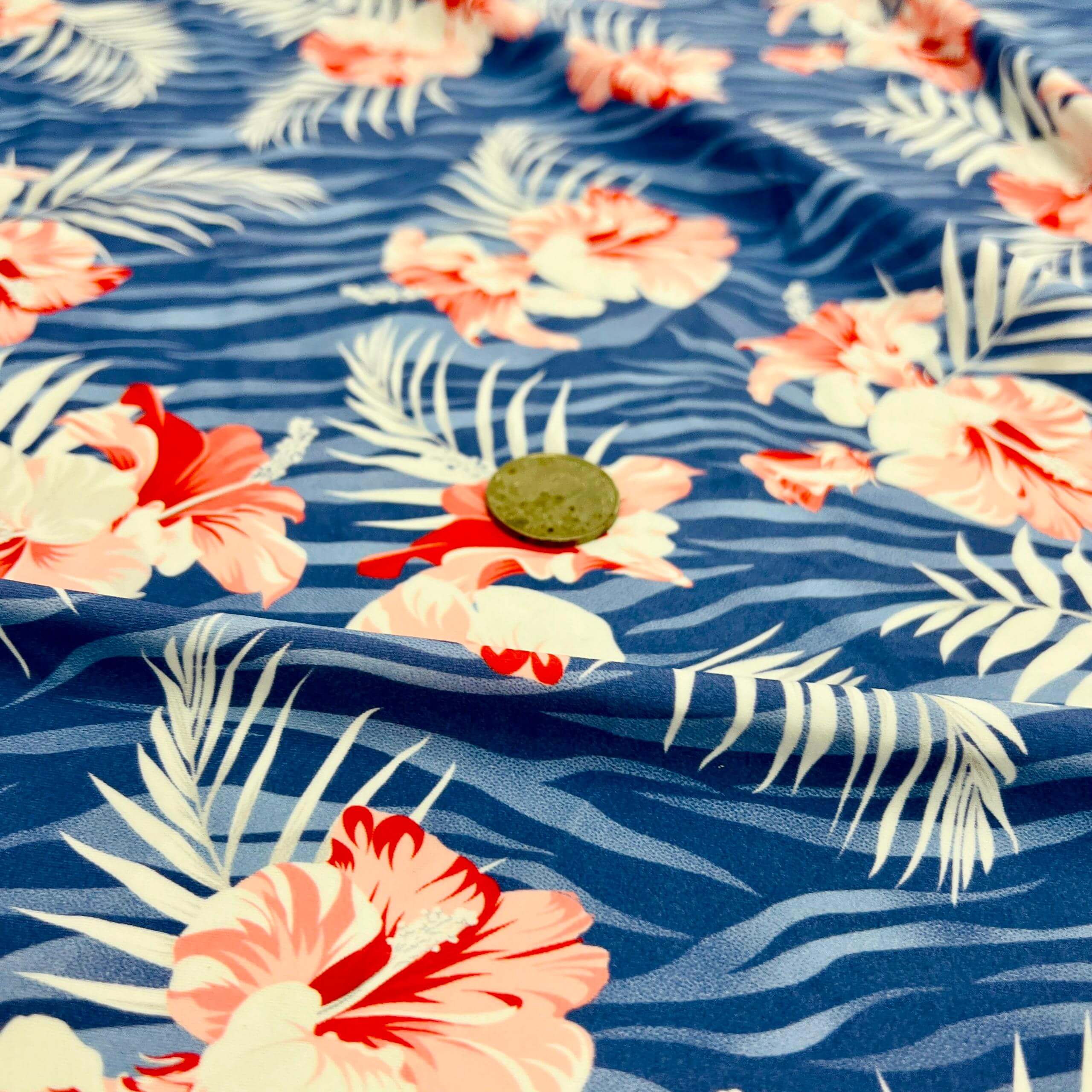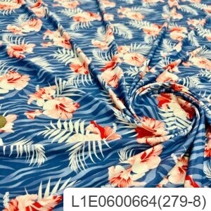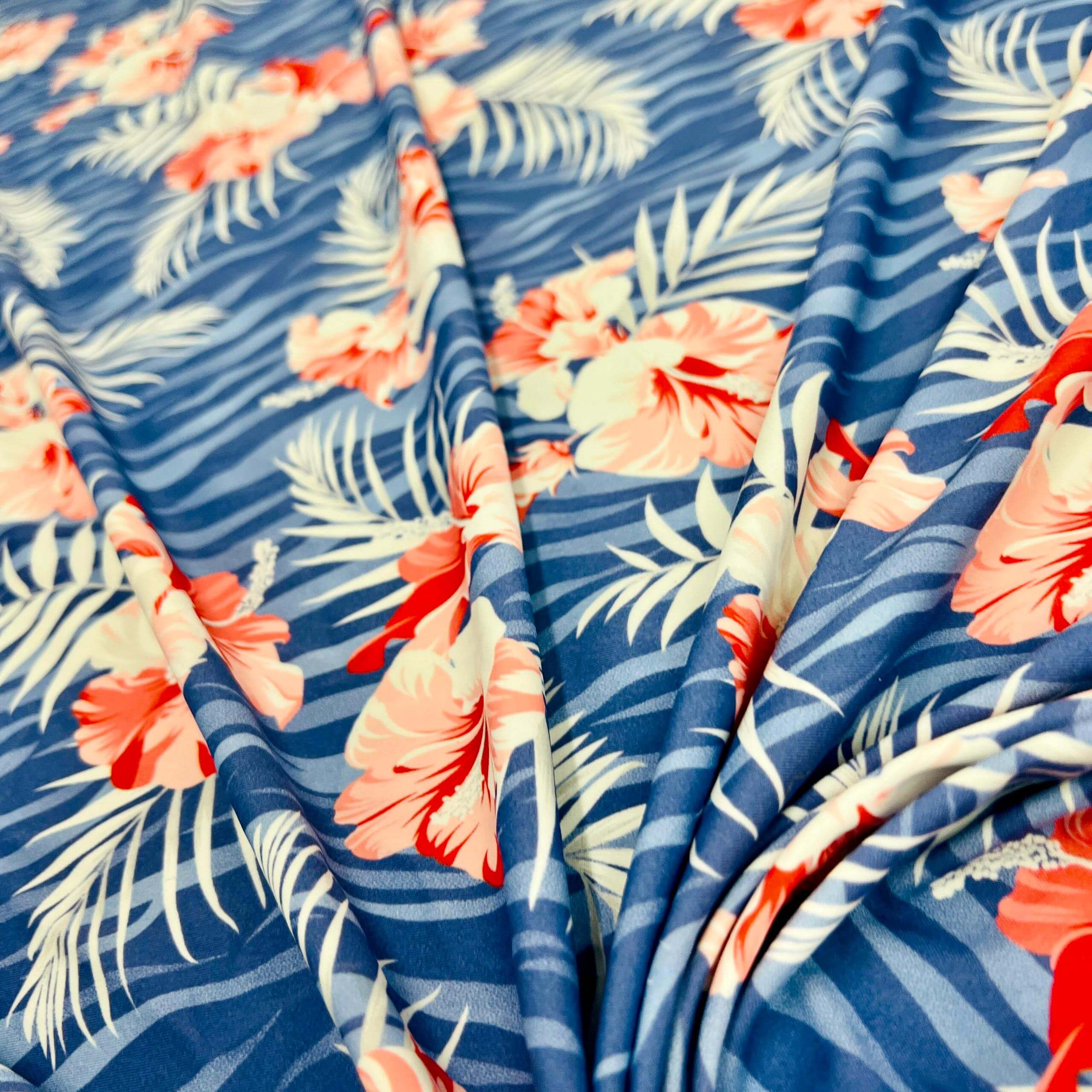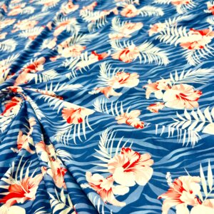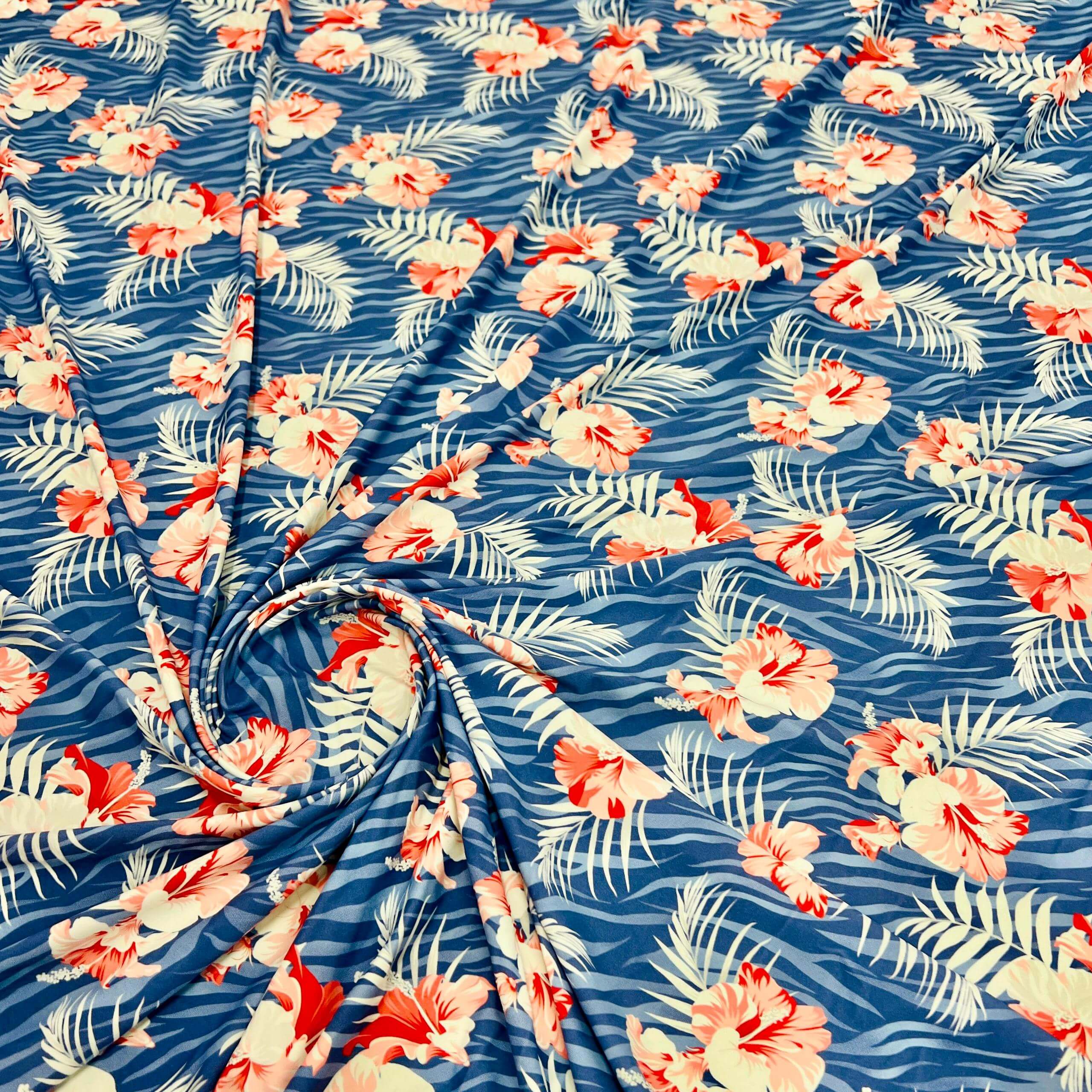 Red Cayennes Blue Zebra background Print Nylon Lycra Spandex Fabric 4 Way Stretch By Yard for swimwear dancewear gymwear sportwear dress (279-8)