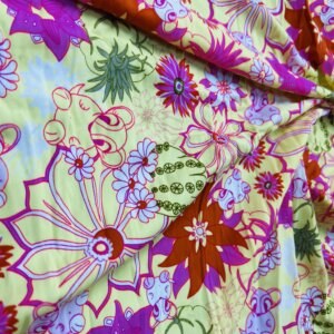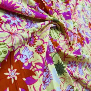 red flower cream Background print Nylon Spandex Fabric 4 Way Stretch for swimwear dancewear gymwear sportwear dress skirt (204-7)
