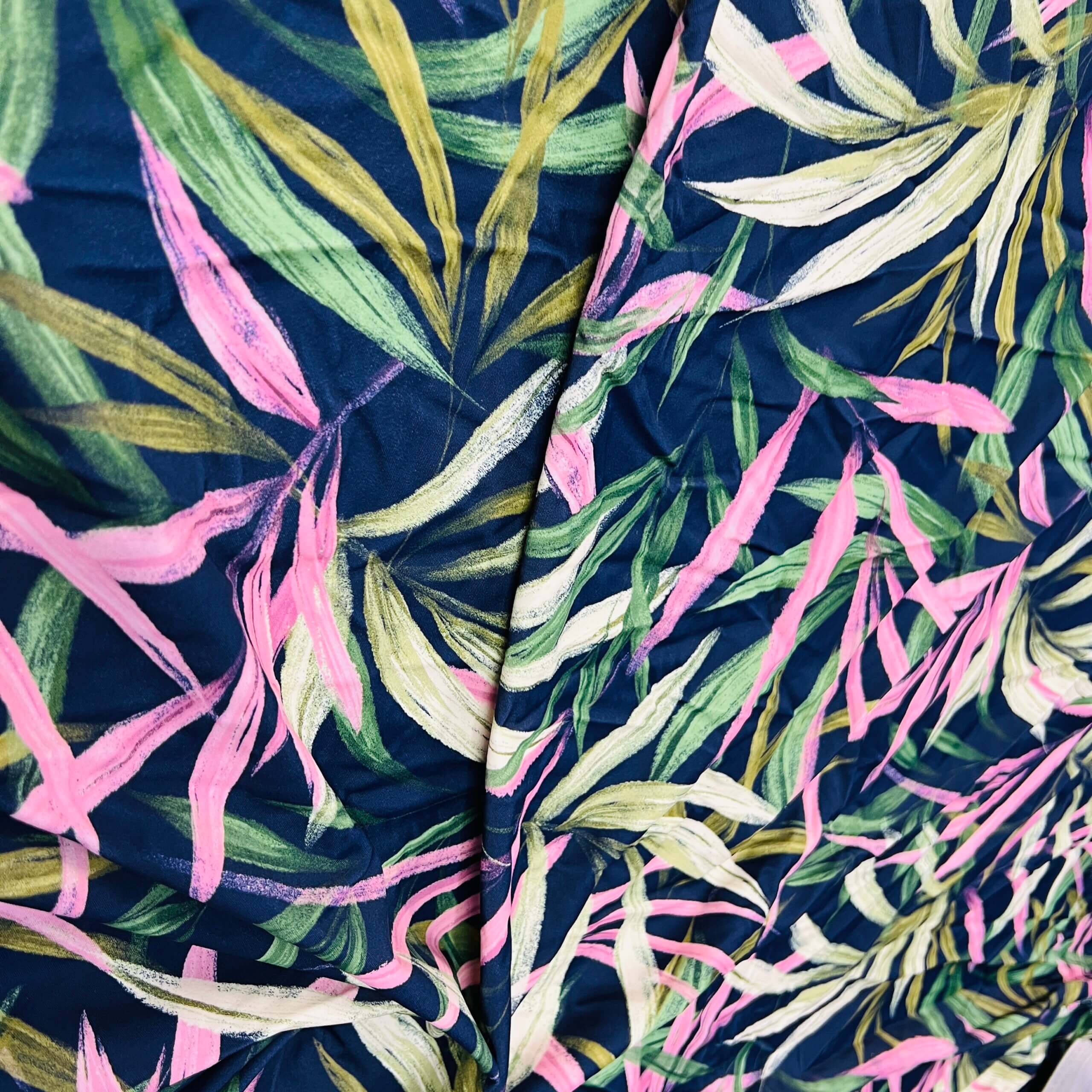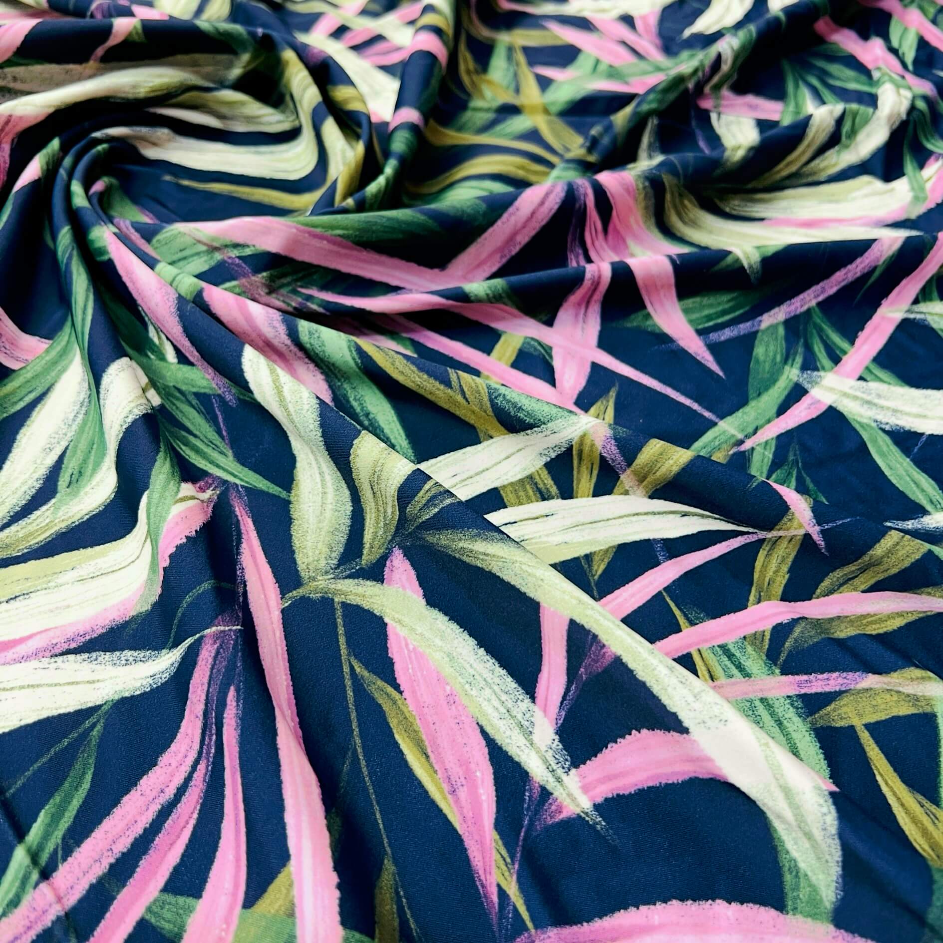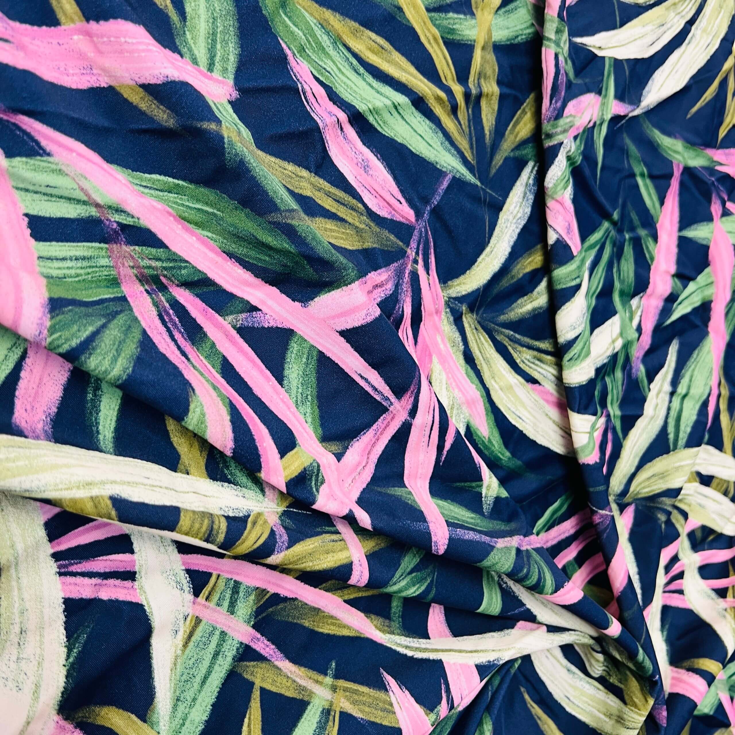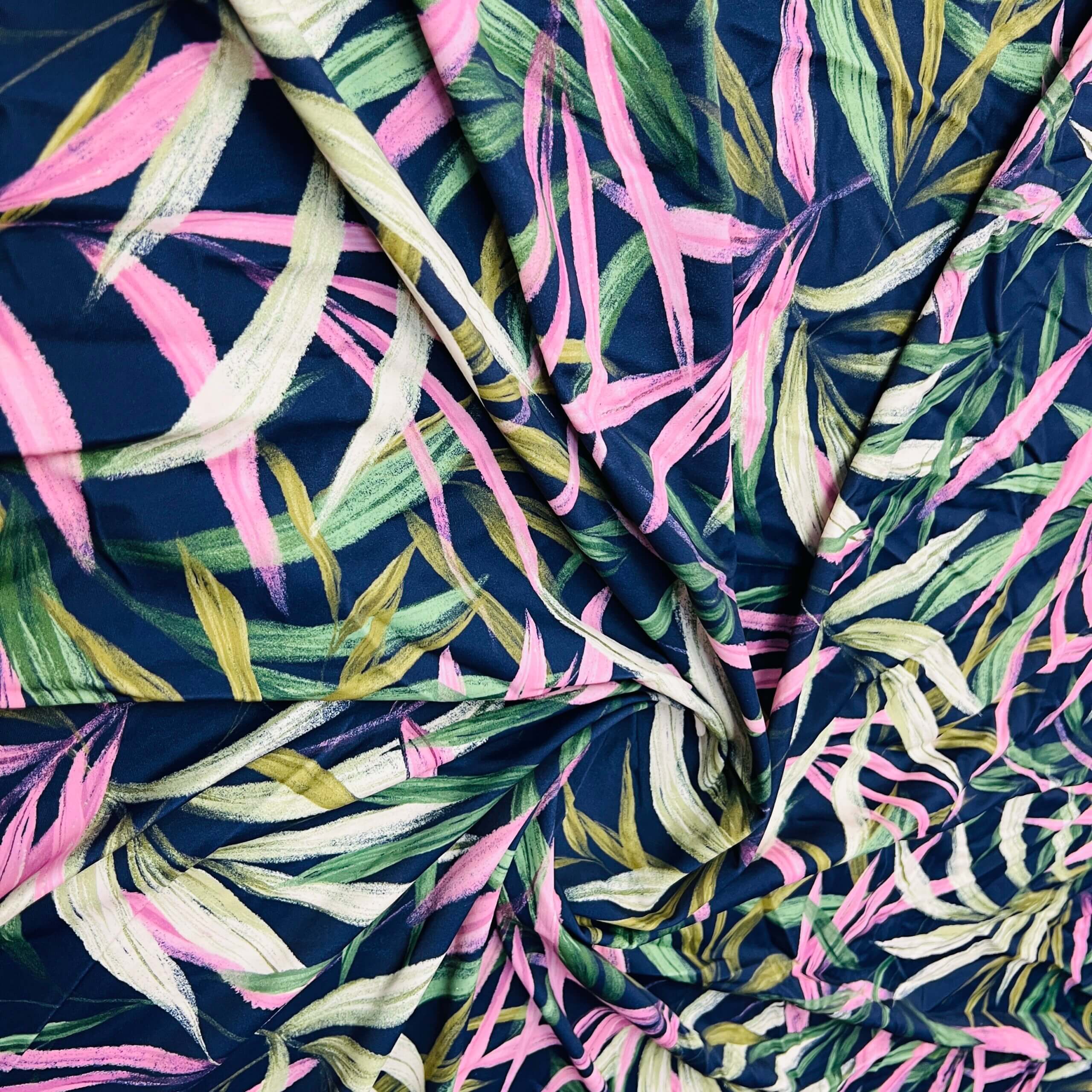 pink leaves navy Background print Nylon lycra Spandex Fabric 4 Way Stretch for swimwear dancewear gymwear sportwear dress skirt (243-4)