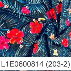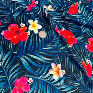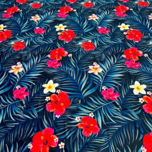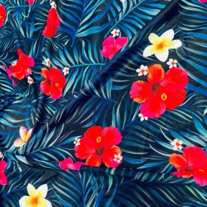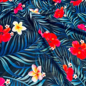 Red Flowers with Blue Leaves Print Nylon Lycra Spandex Fabric 4 Way Stretch By Yard for swimwear dancewear gymwear sportwear dress (203-2)