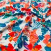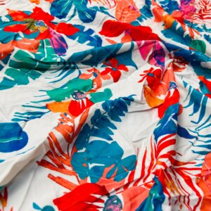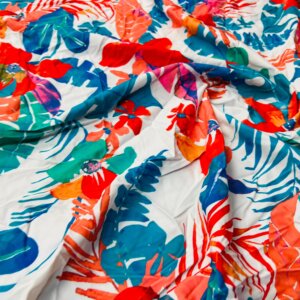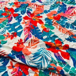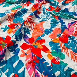 Red Flowers with Blue Leaves Print Nylon Lycra Spandex Fabric 4 Way Stretch By Yard for swimwear dancewear gymwear sportwear dress (239-10)