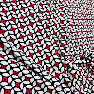 Red Flowers with White and Black Mandala Print Nylon Lycra Spandex Fabric 4 Way Stretch By Yard for swimwear dancewear gymwear sportwear dress (239-7)