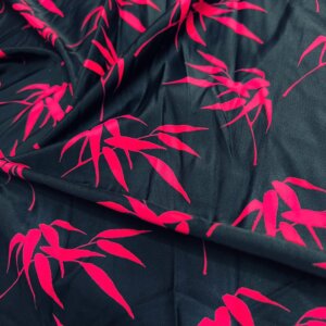Red Leaves Black Background Print Nylon Lycra Spandex Fabric 4 Way Stretch By Yard for swimwear dancewear gymwear sportwear dress