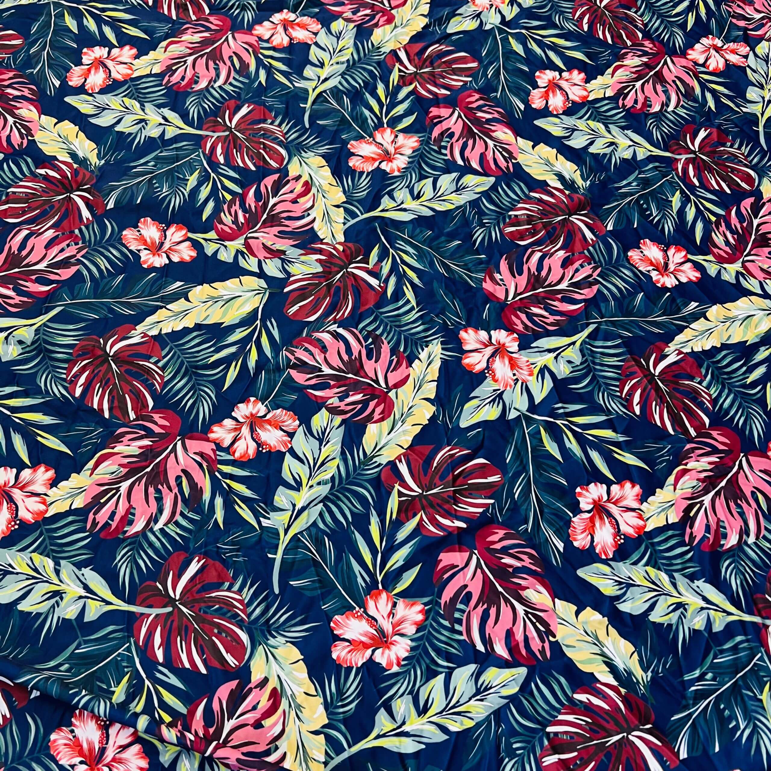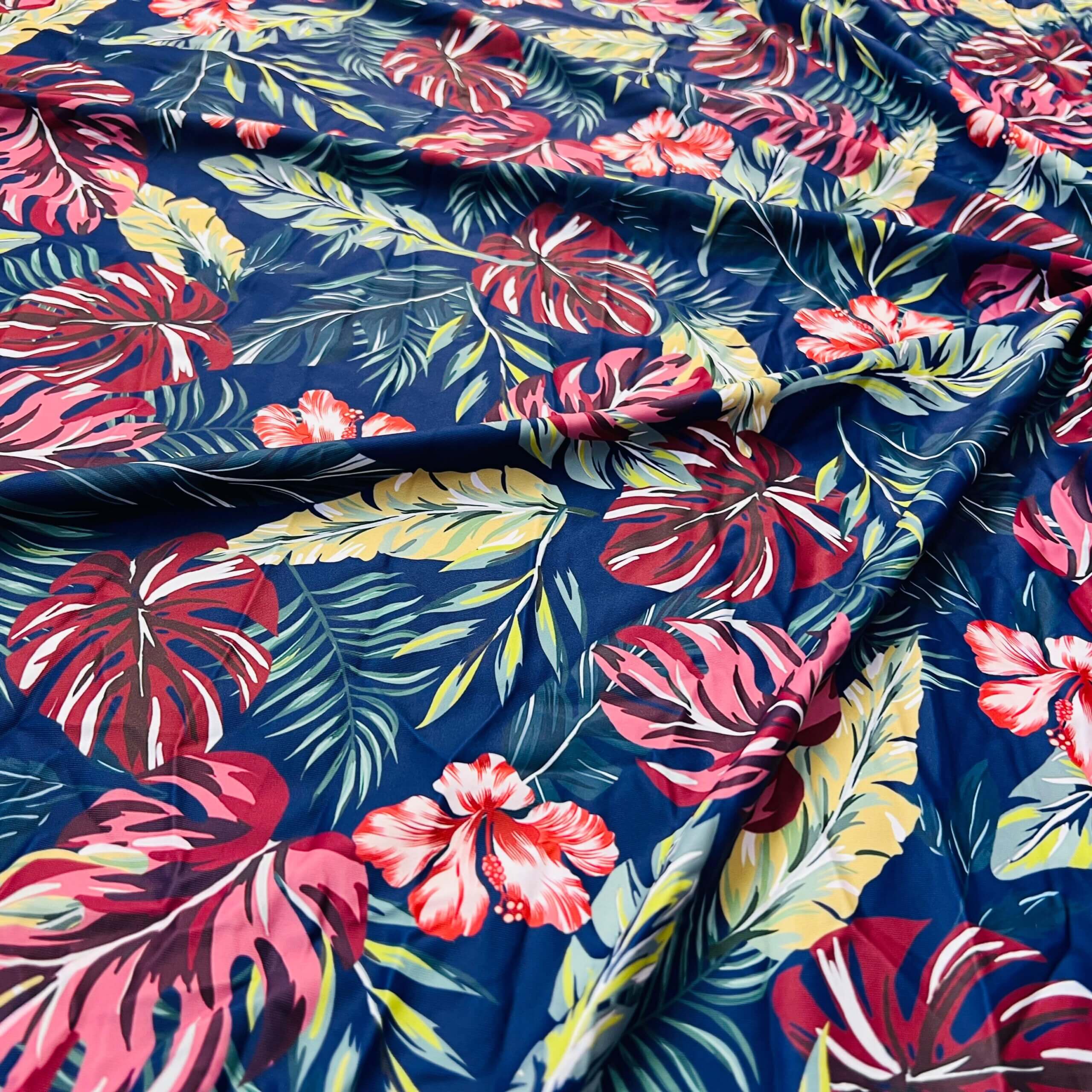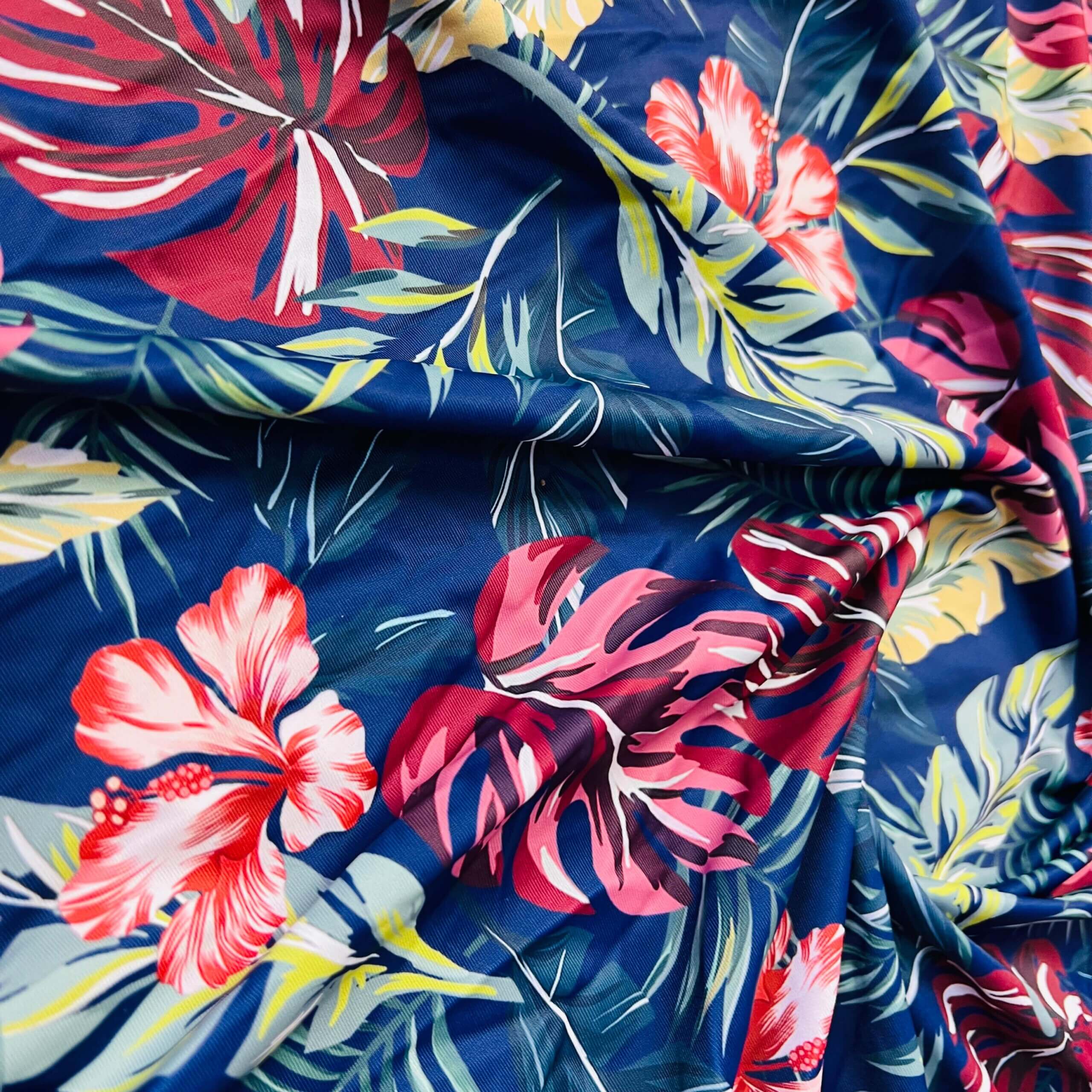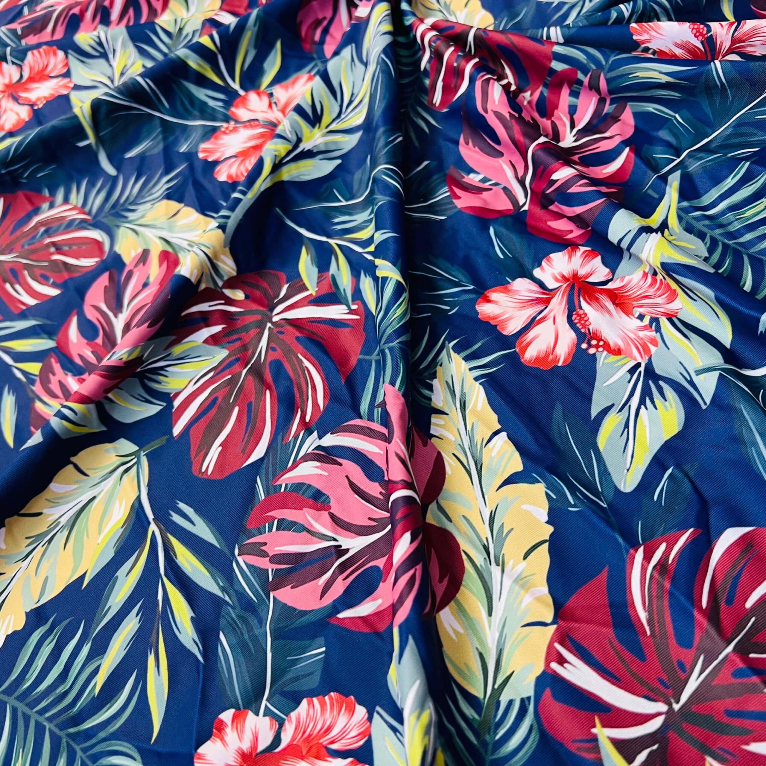 Red Vintage Leaves Blue Background Print Nylon Lycra Spandex Fabric 4 Way Stretch By Yard for swimwear dancewear gymwear sportwear dress (242-11)