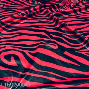 You are viewing Red Zebra Animal Print Nylon Lycra Spandex Fabric 4 Way Stretch By Yard for swimwear dancewear sportswear dress. Extremely beautiful print weight 200 to 220 GSM  80% Nylon 20% Spandex.