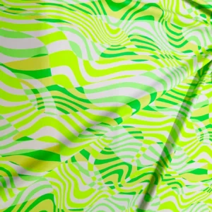 Retro Disco 80’s Neon Green Abstract Print Nylon Lycra Spandex fabric four way Stretch by Yard for swimwear dancewear dress gymwear