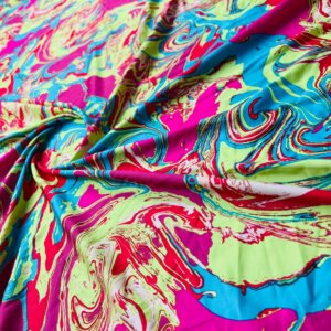 27″ Long / Retro Psychedelic Multicolor Neon Print Nylon Lycra Spandex Fabric 4 Way Stretch By Yard for swimwear dancewear gymwear sportwear dress (204-6)