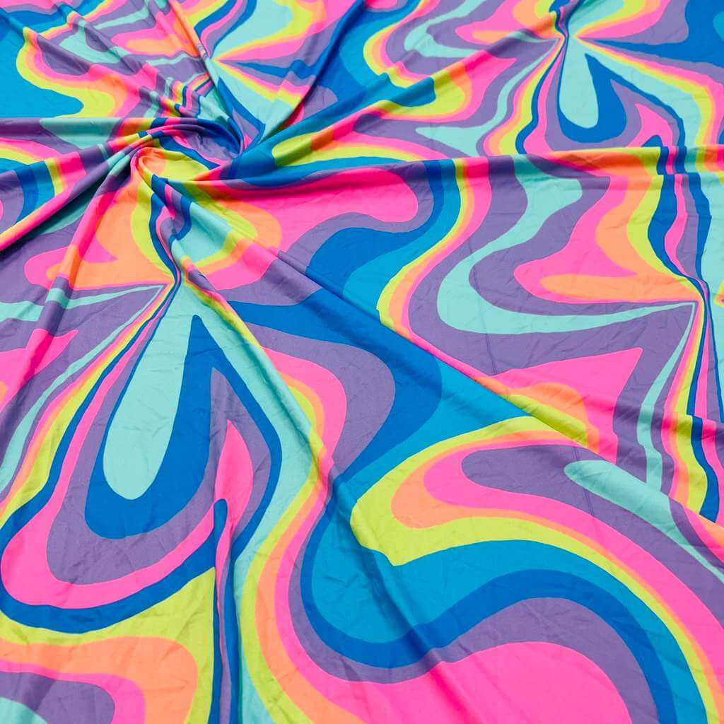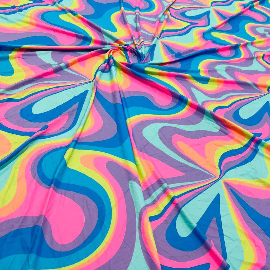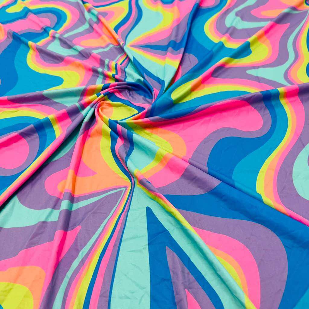 Retro Psychedelic Print Nylon Lycra Spandex Fabric 4 Way Stretch By Yard for swimwear dancewear gymwear sportwear dress