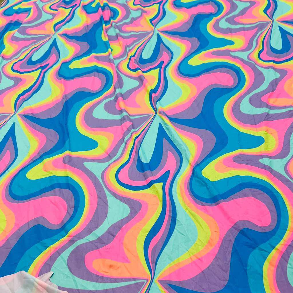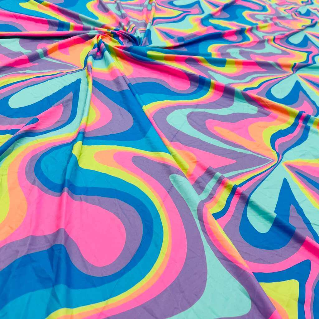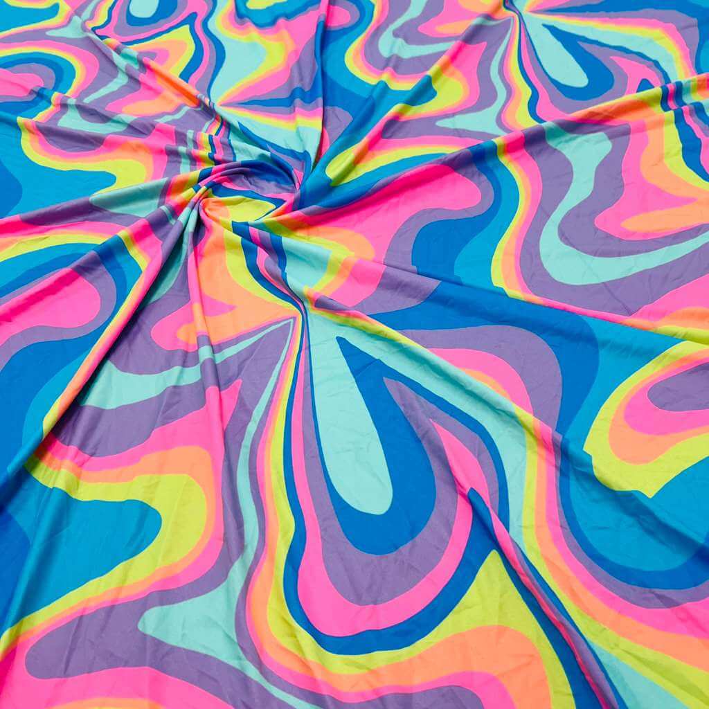 Retro Psychedelic Print Nylon Lycra Spandex Fabric 4 Way Stretch By Yard for swimwear dancewear gymwear sportwear dress