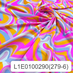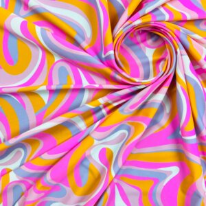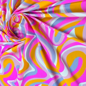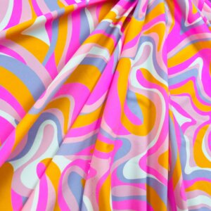 Retro Purple and Orange Print Nylon Lycra Spandex Fabric 4 Way Stretch for Swimwear Dancewear Sportwear (279-6)