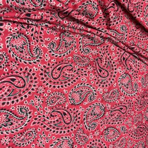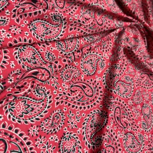 Retro Red Paisley Print Nylon Spandex Fabric 4 Way Stretch for swimwear dancewear gymwear sportwear dress skirt