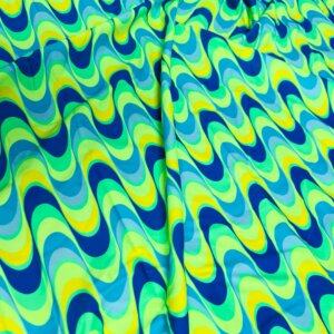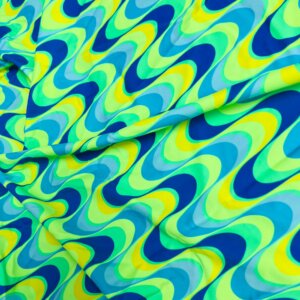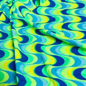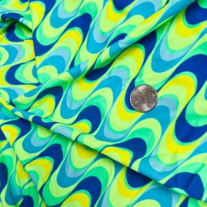 Retro Wavy Green and Blue Print Nylon Lycra Spandex Fabric 4 Way Stretch By Yard for swimwear dancewear gymwear sportwear dress (239-11)