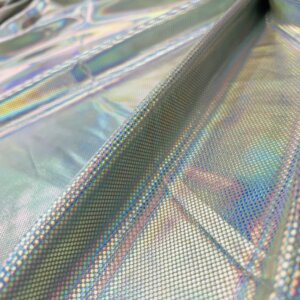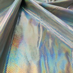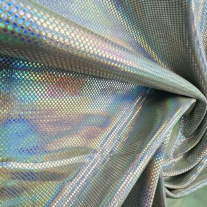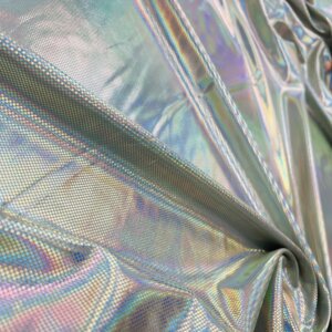 You are viewing Silver Hologram Metallic Foil Reflection Nylon Lycra Spandex Fabric 4 Way Stretch By Yard for swimwear dancewear sportwear dress