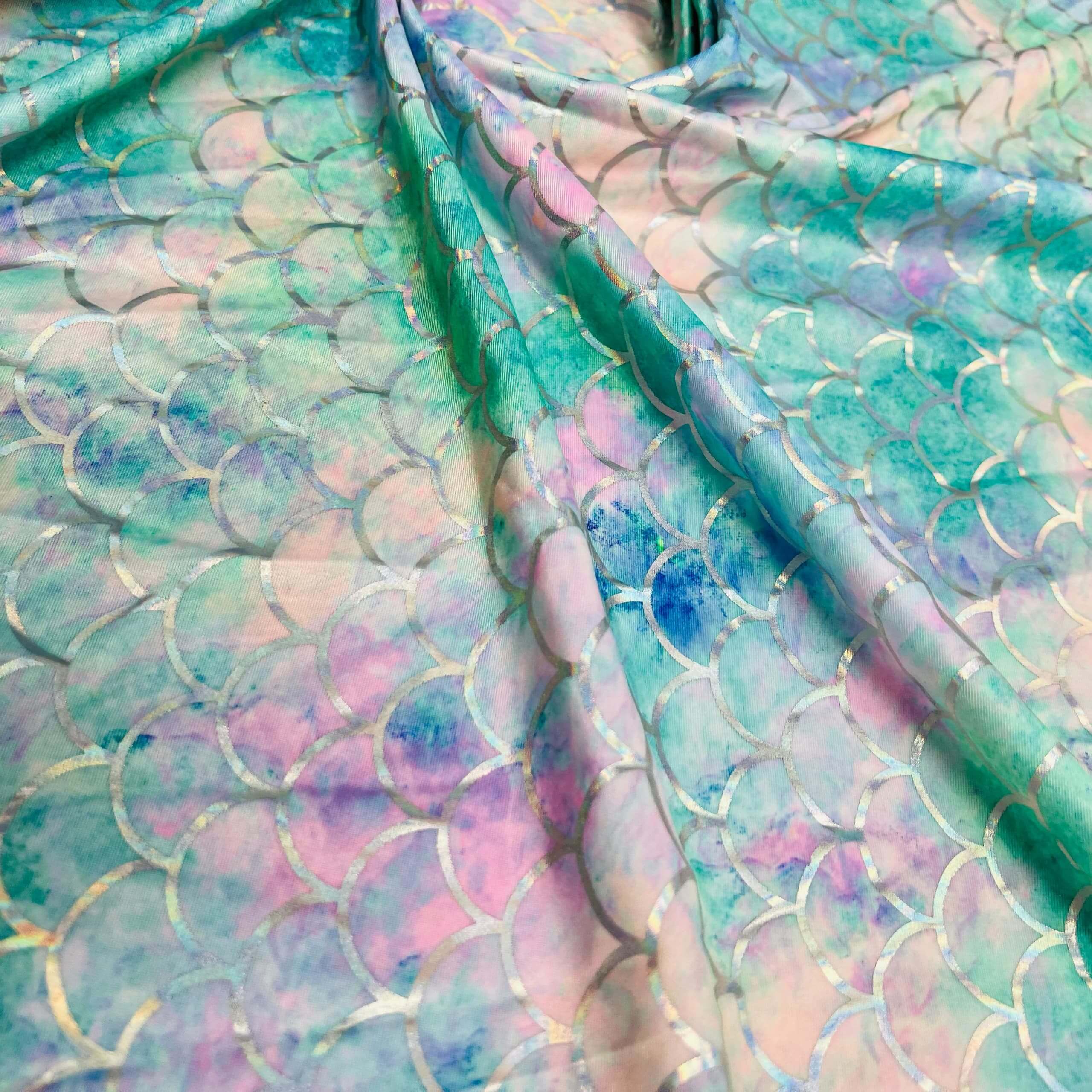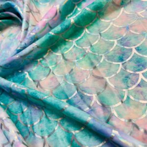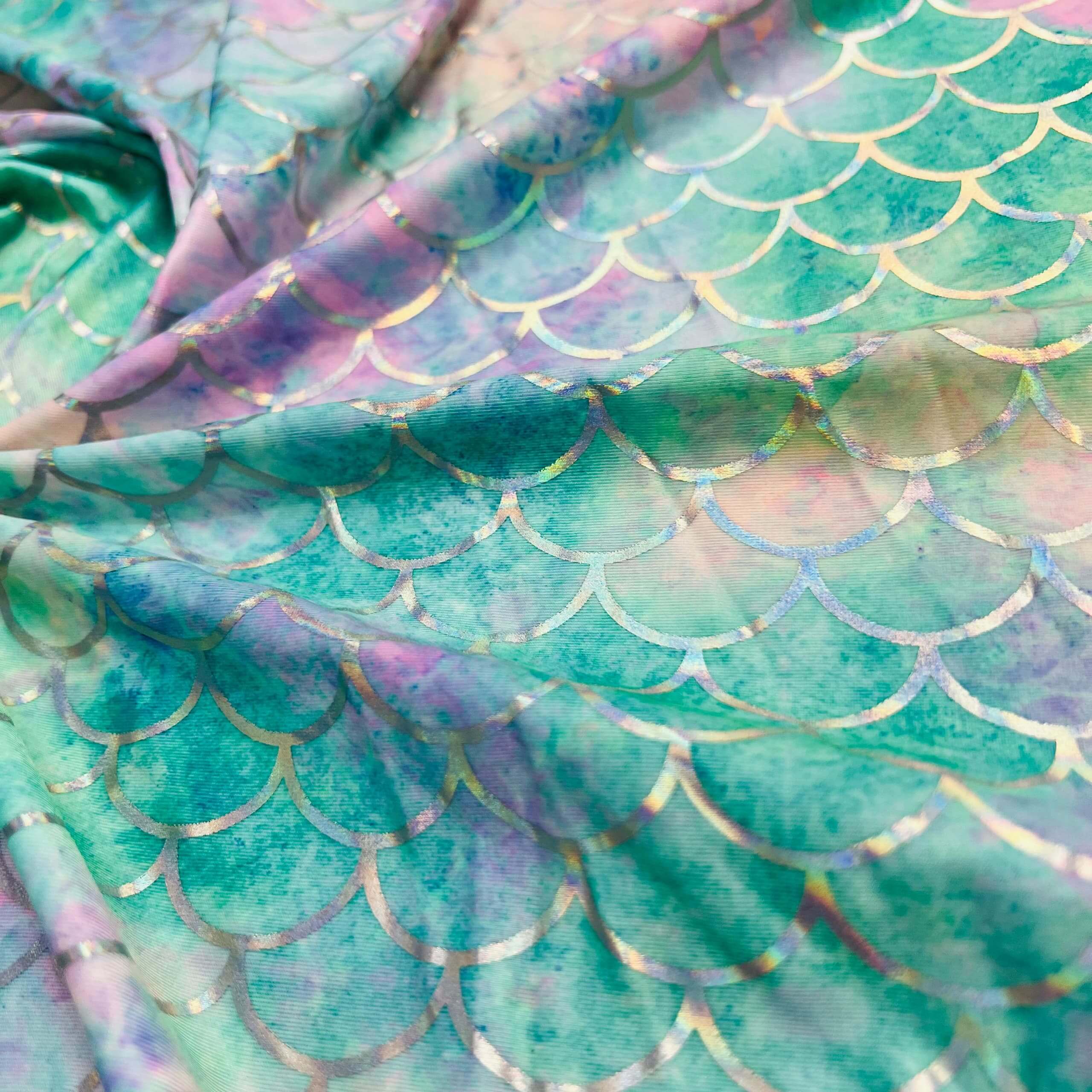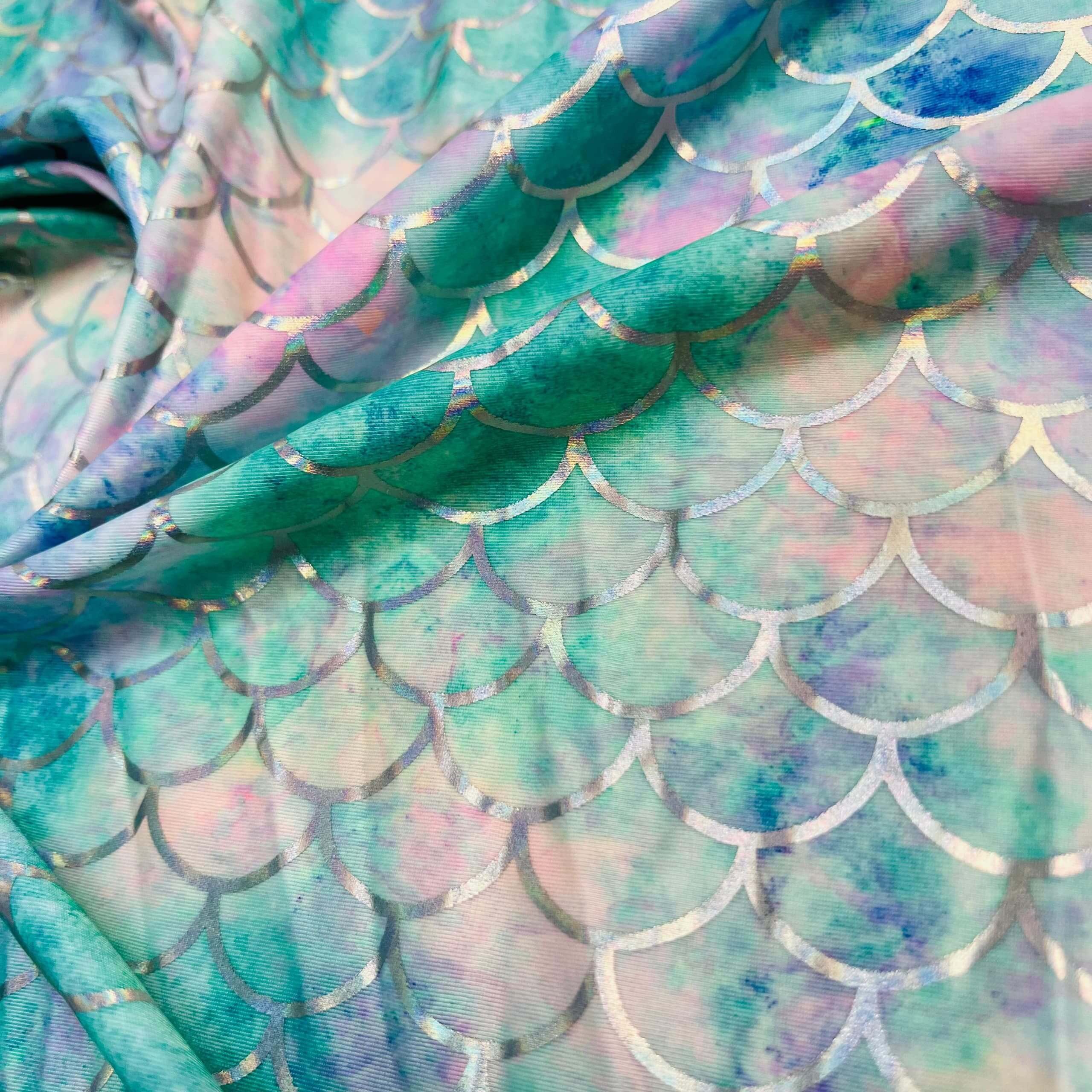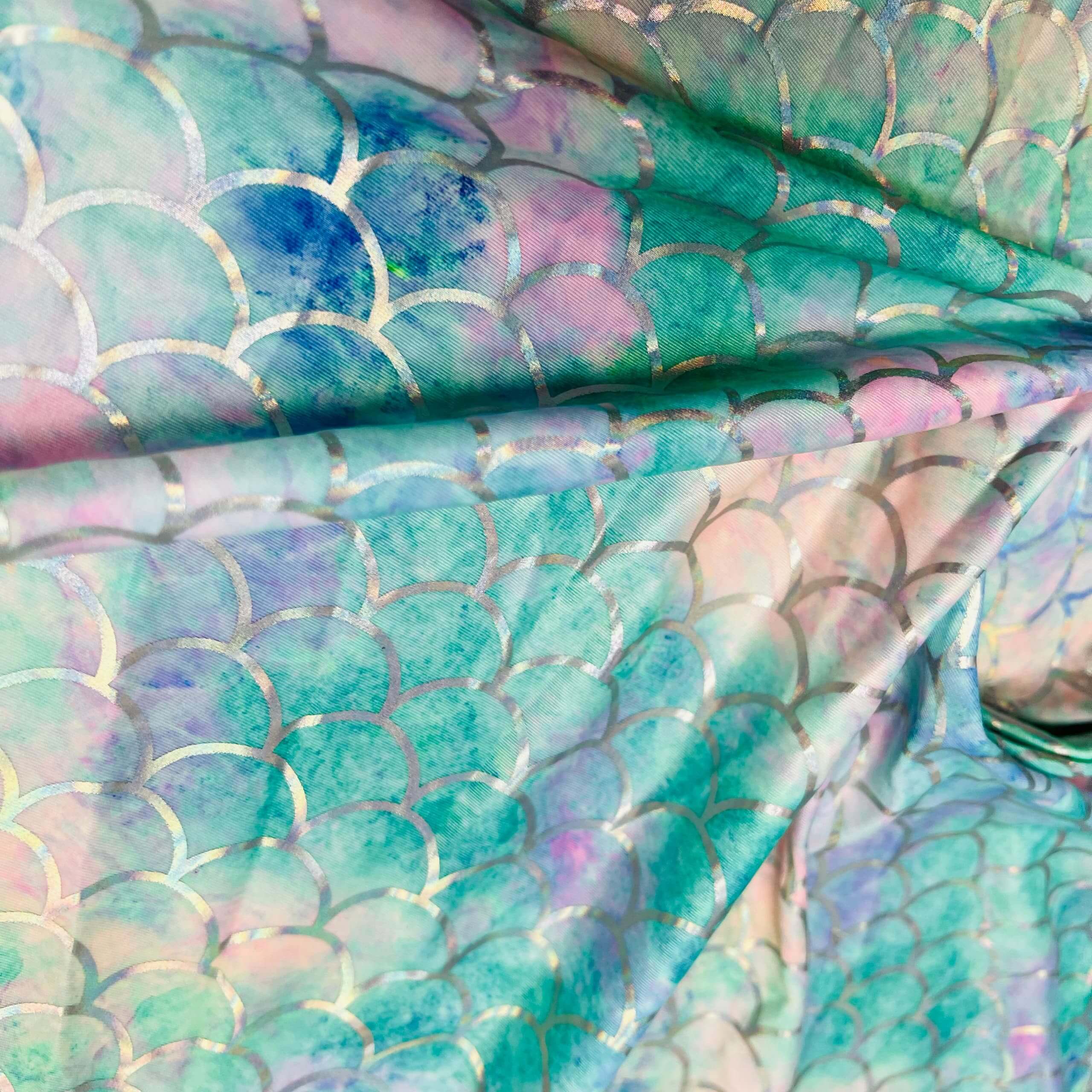 Silver Metallic Scales Tie Dye background Print Nylon Lycra Spandex Fabric 4 Way Stretch By Yard for swimwear dancewear gymwear sportwear dress (242-11)