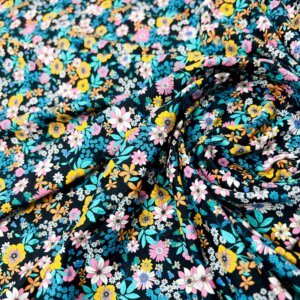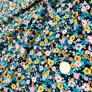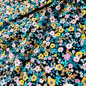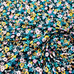 Small Blue Flowers Black background Print Nylon Lycra Spandex Fabric 4 Way Stretch By Yard for swimwear dancewear gymwear sportwear dress (239-7)