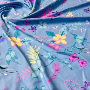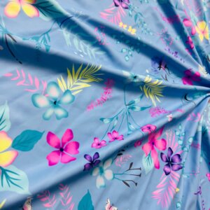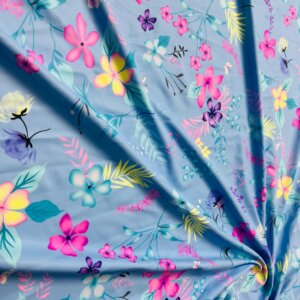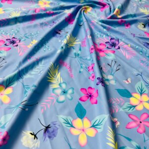 Small Colorful Flowers Purple Background Print Nylon Lycra Spandex Fabric 4 Way Stretch By Yard for swimwear dancewear gymwear sportwear dress (279-3)