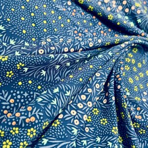 Small Flowers Prussian Blue background Print Nylon Lycra Spandex Fabric 4 Way Stretch By Yard for swimwear dancewear gymwear sportwear dress (239-5)