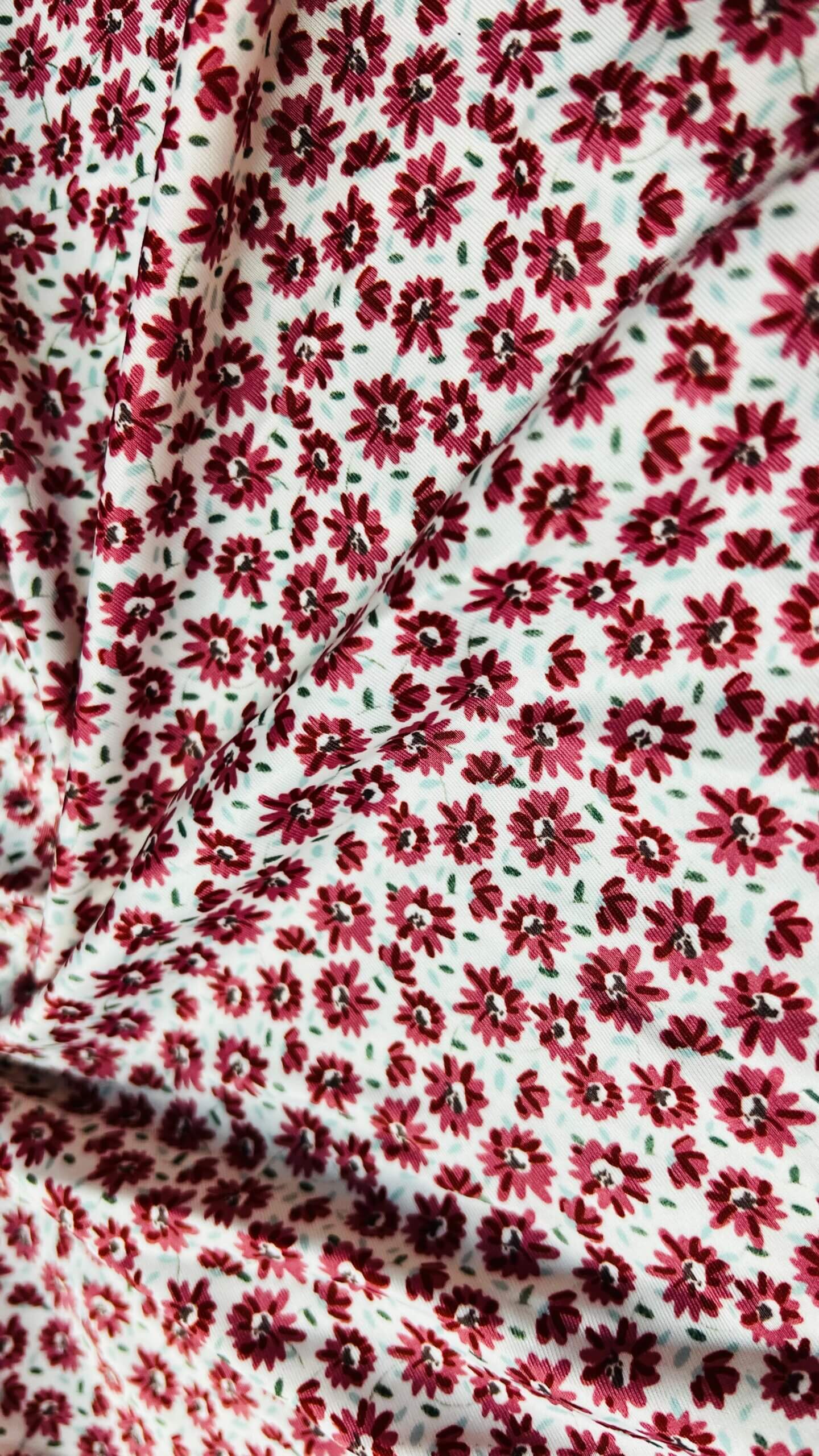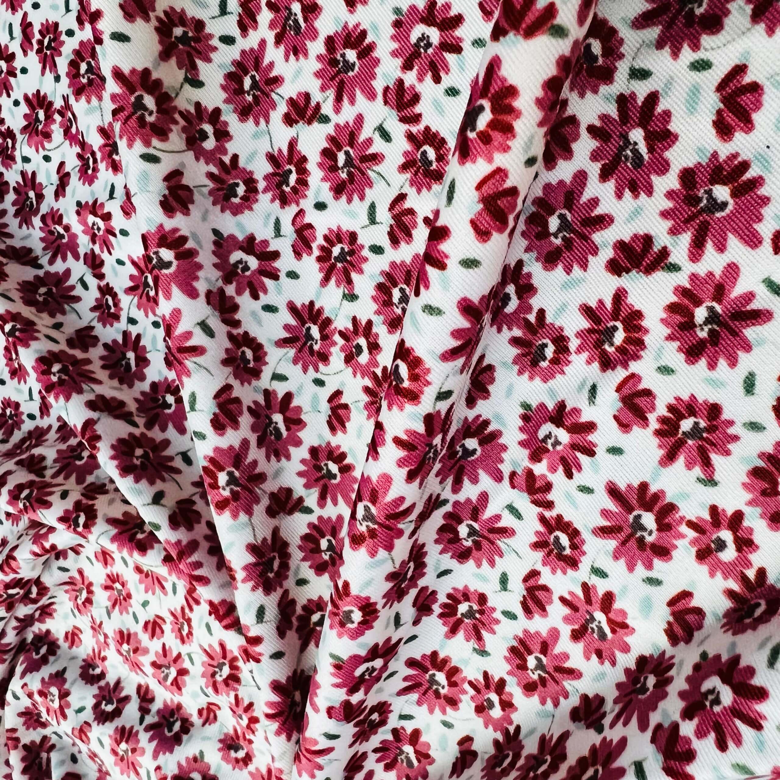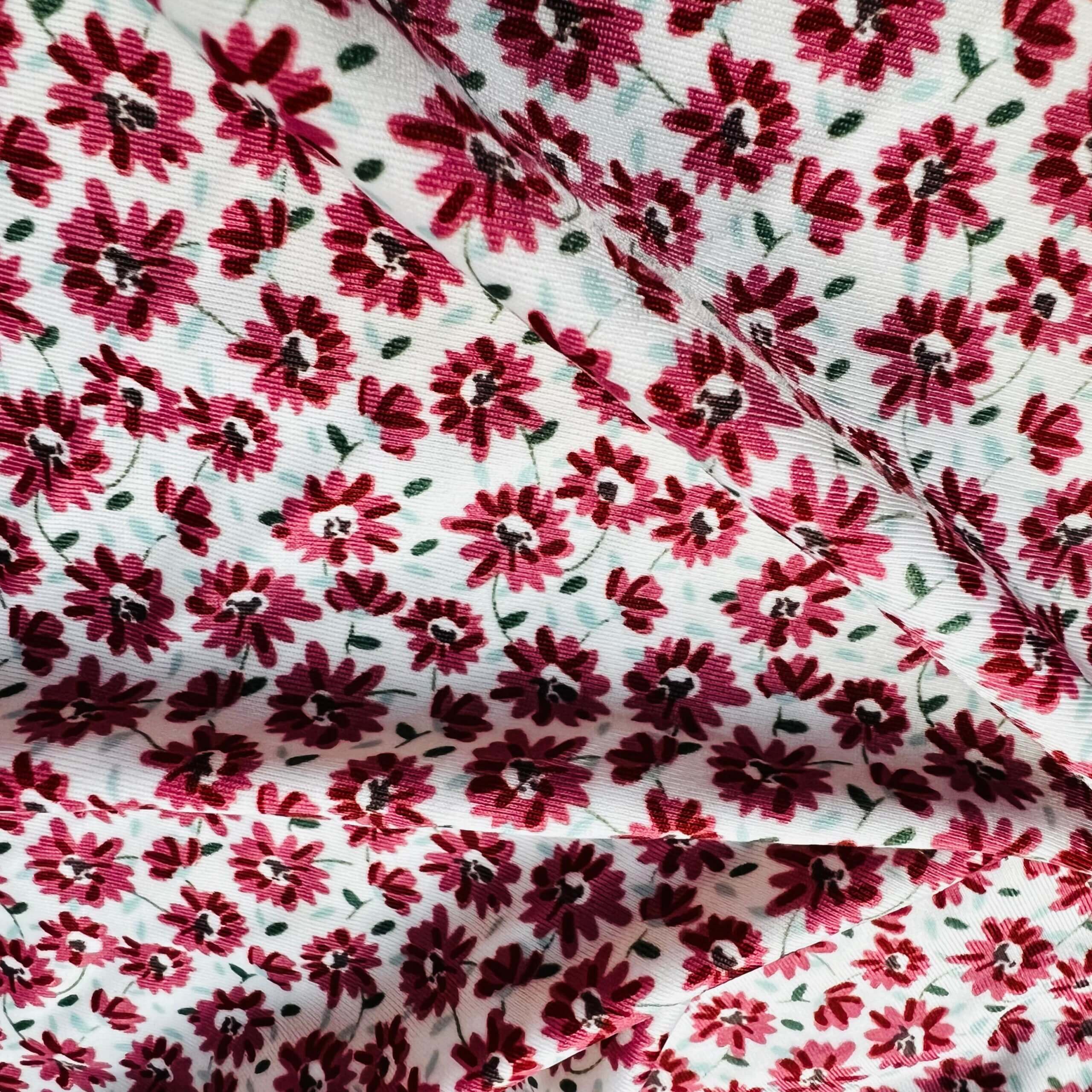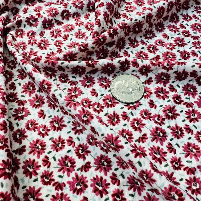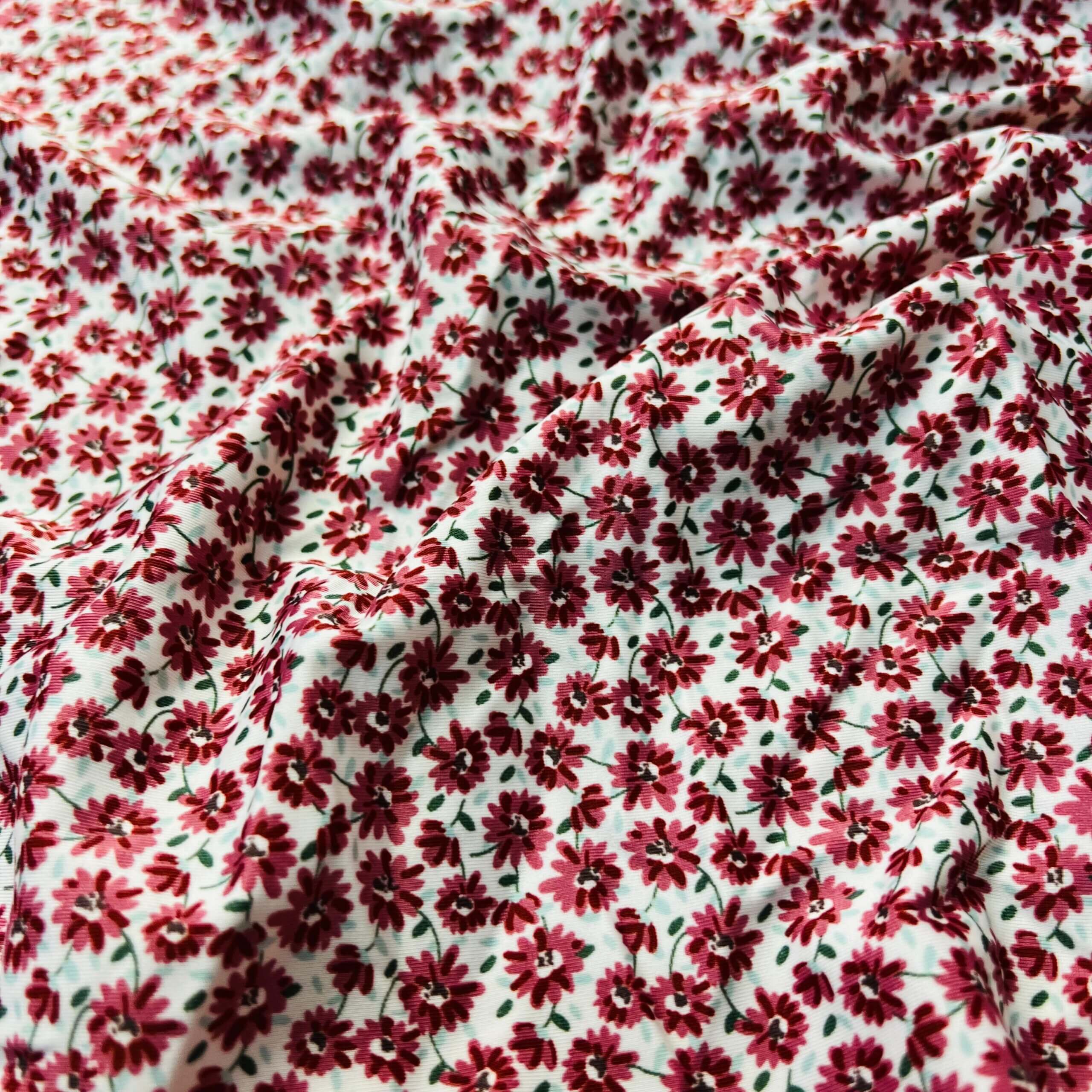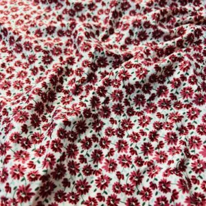 2 Yard 9″ Long / Small Flowers Redwine White Background Print Nylon Lycra Spandex Fabric 4 Way Stretch By Yard for swimwear dancewear gymwear sportwear dress (203-11)