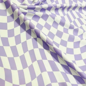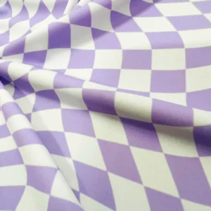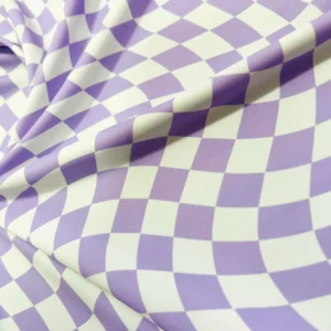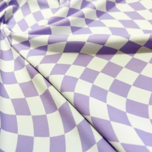 You are viewing Squares Purple and White Print Nylon Spandex Fabric 4 Way Stretch By Yard for swimwear dancewear gymwear sportwear dress skirt