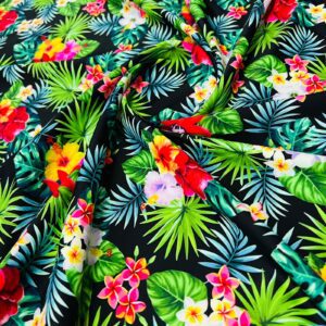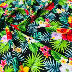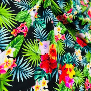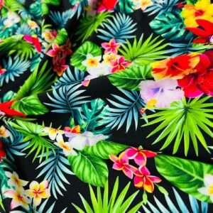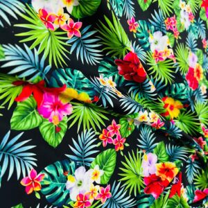 Stretch Fabric Cayennes and Leaves Print 4 Way Stretch Nylon Spandex By Yard for Swimwear (243-2)