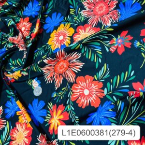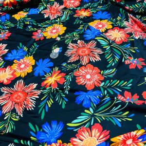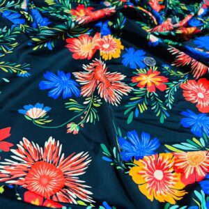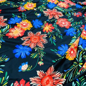 Summer Flowers Black Background Print Nylon Lycra Spandex Fabric 4 Way Strech by Yard for swimwear dancewear dress gymwear (204-4)