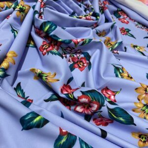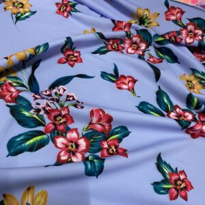 Spring Blue Floral Print Spandex Fabric Sheet Best Seller By Yard (279-5)