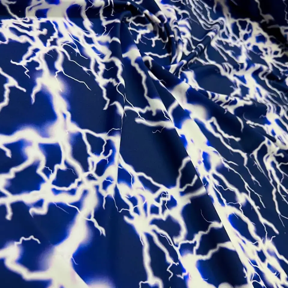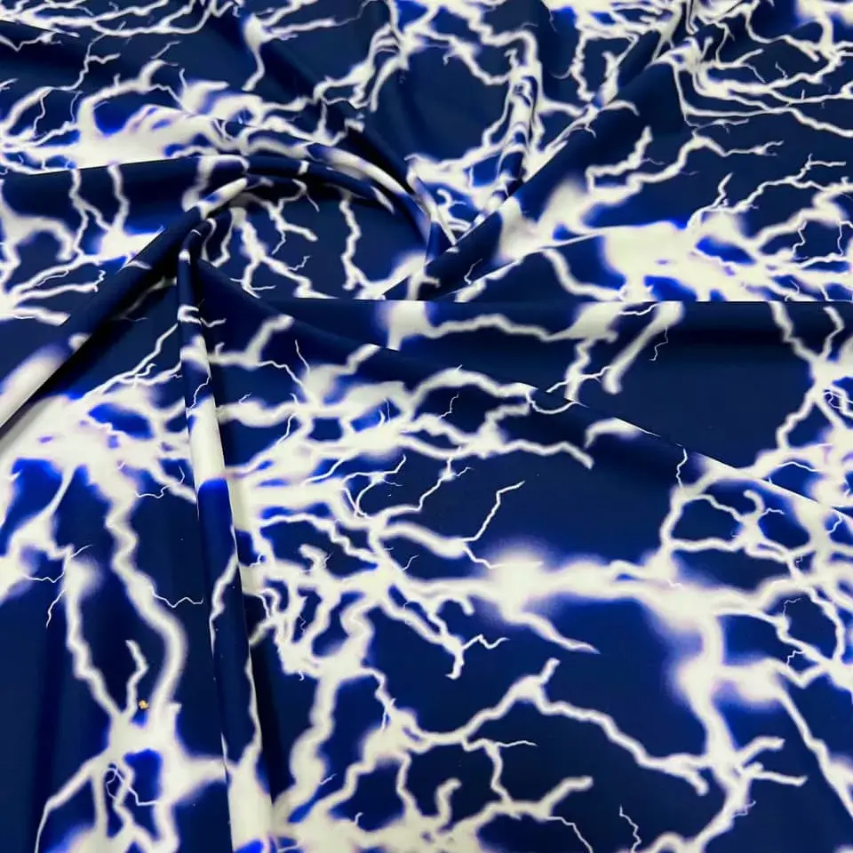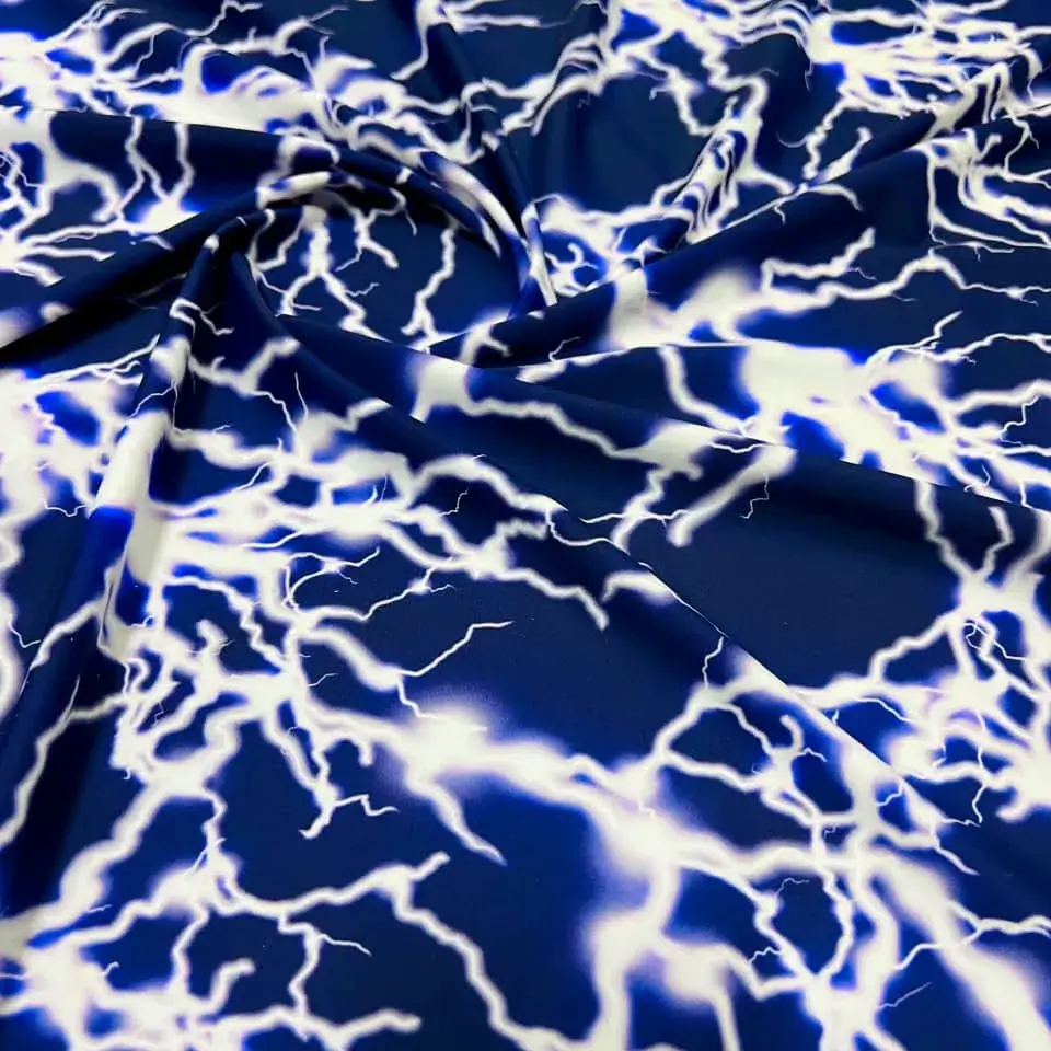 Thunders Print Nylon Lycra Spandex Fabric 4 Way Stretch for Swimwear Dancewear Sportwear