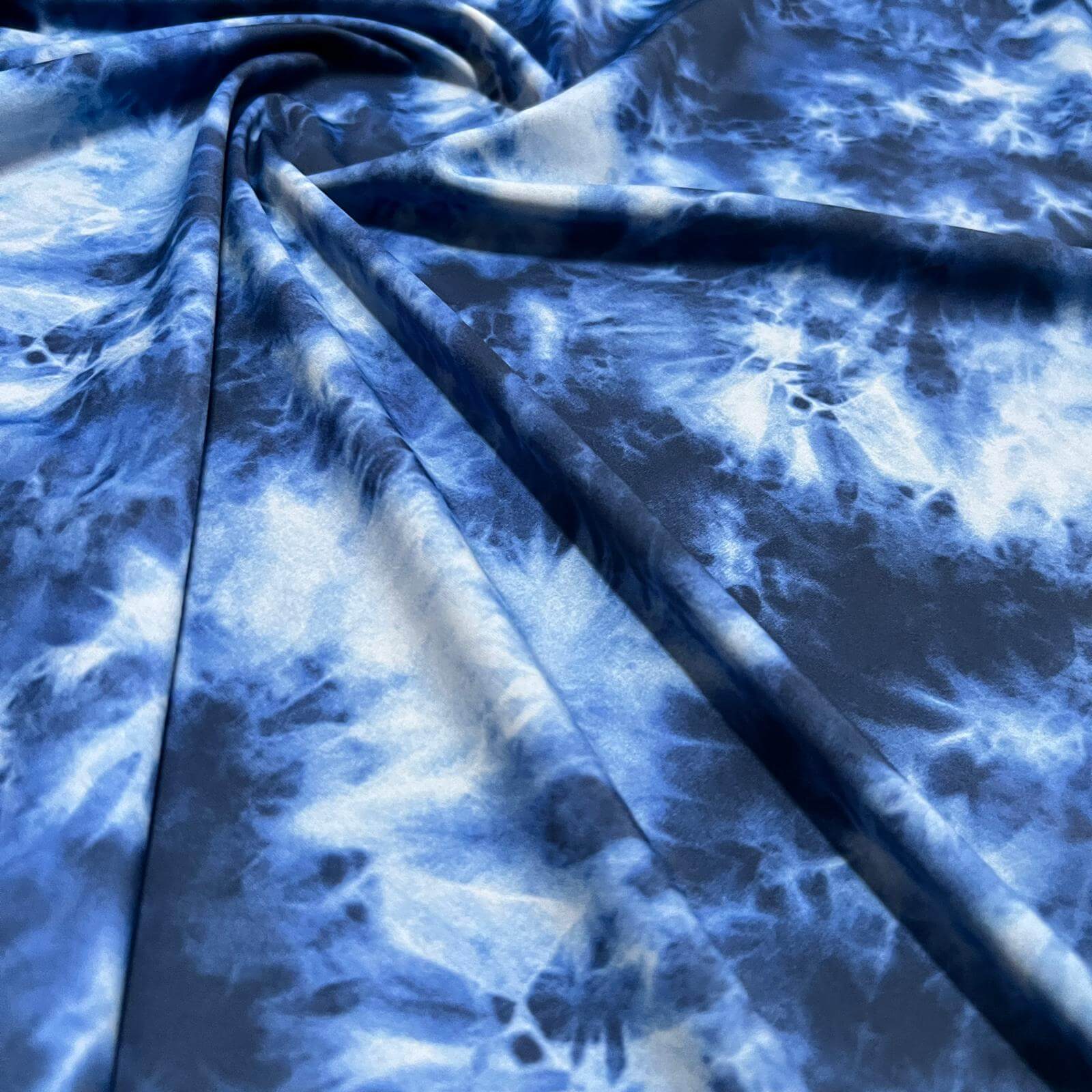 Tie Dye Blue Print Nylon Spandex Fabric 4 Way Stretch By Yard for swimwear dancewear gymwear sportwear (158-1)