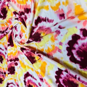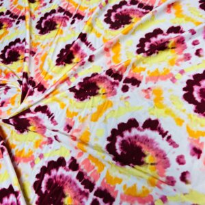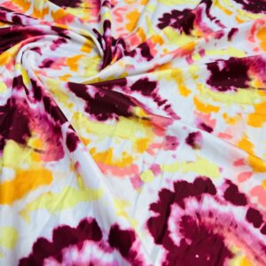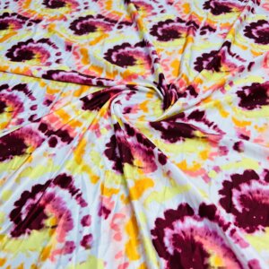 Tie Dye Retro Wine Red and Yellow Print Nylon Lycra Spandex Fabric 4 Way Stretch By Yard for swimwear dancewear gymwear sportwear dress (239-5)