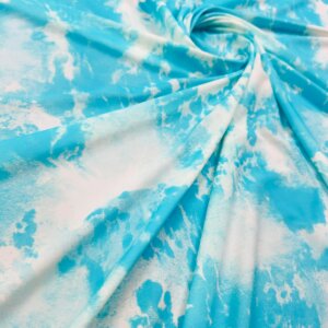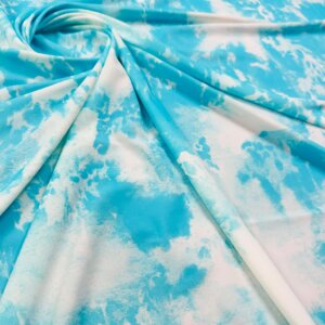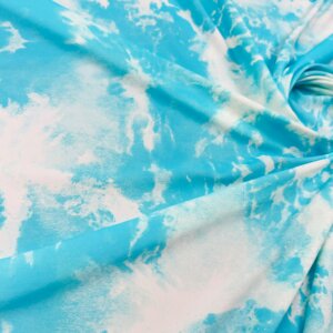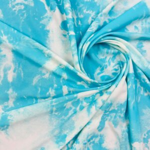 Tie Dye Sky Blue and White Print Nylon Lycra Spandex Fabric 4 Way Stretch By The Yard for swimwear dancewear sportwear dress (203-5) (rs)