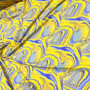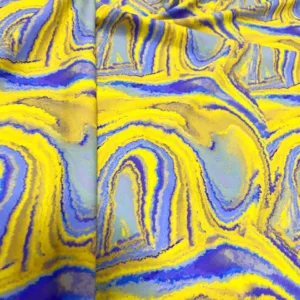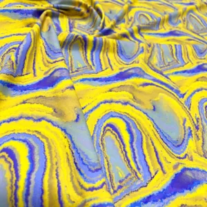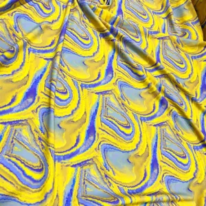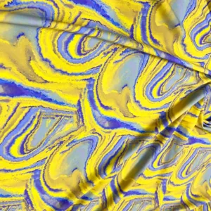 Tie Dye Yellow and Blue Print Nylon Spandex Fabric 4 Way Stretch By Yard for swimwear dancewear gymwear sportwear (243-11)