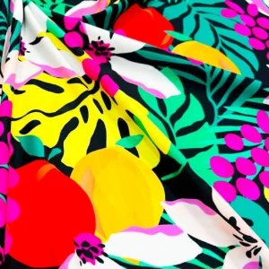 Tropical Fruits and Flowers Print Nylon Spandex Fabric 4 Way Stretch By Yard for swimwear dancewear gymwear sportwear dress skirt (239-13)