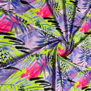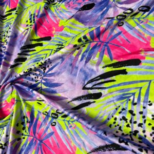 Tropical Leaves with Animal Print Nylon Lycra Spandex Fabric 4 Way Stretch By Yard for swimwear dancewear gymwear sportwear dress (157-9)