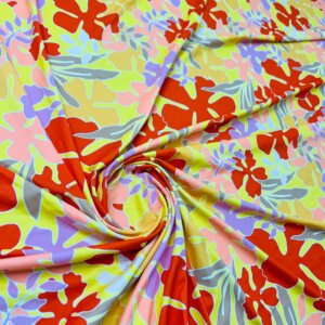 Tropical Sea Flowers Print Nylon Lycra Spandex Fabric 4 Way Stretch By Yard for swimwear dancewear gymwear sportwear dress (239-7)