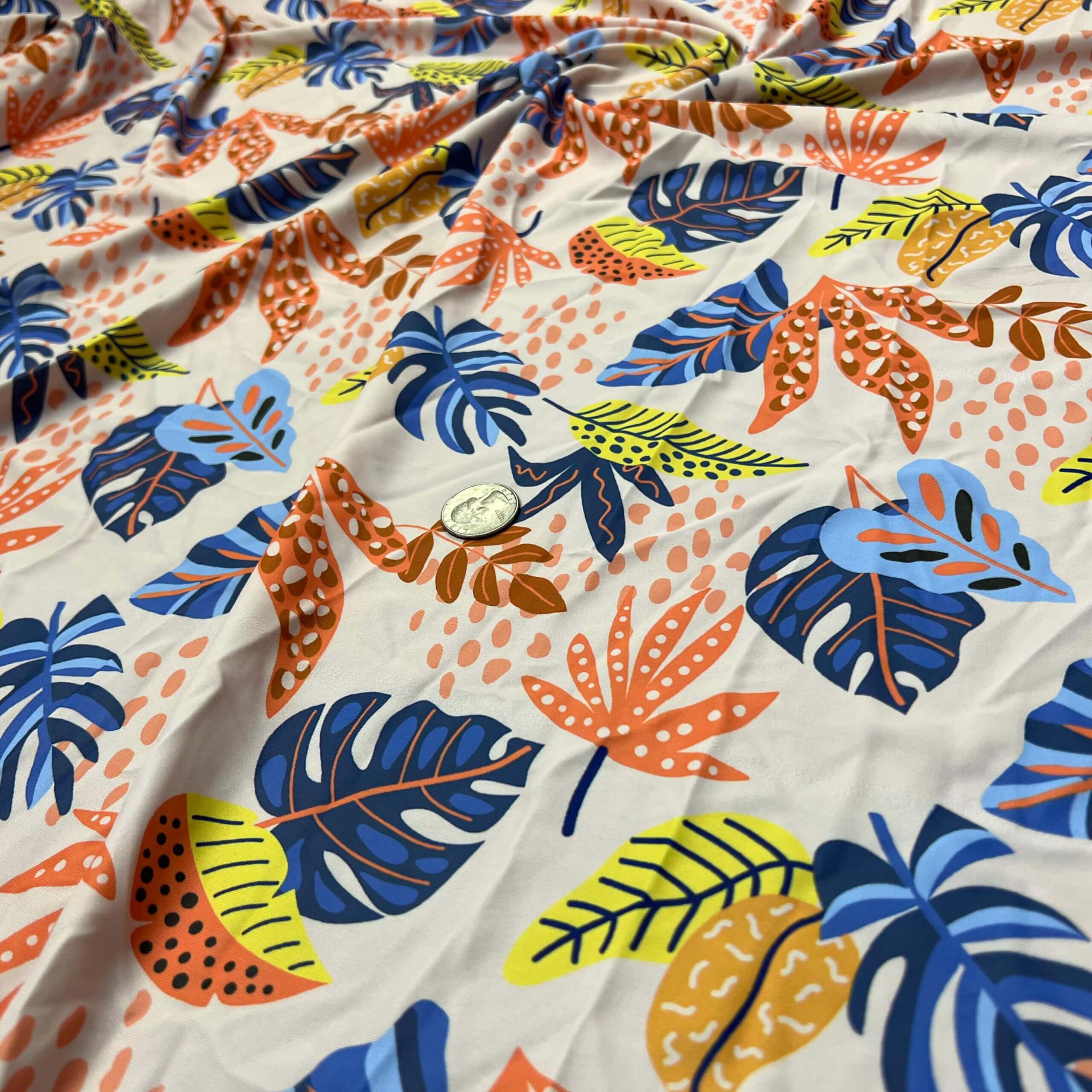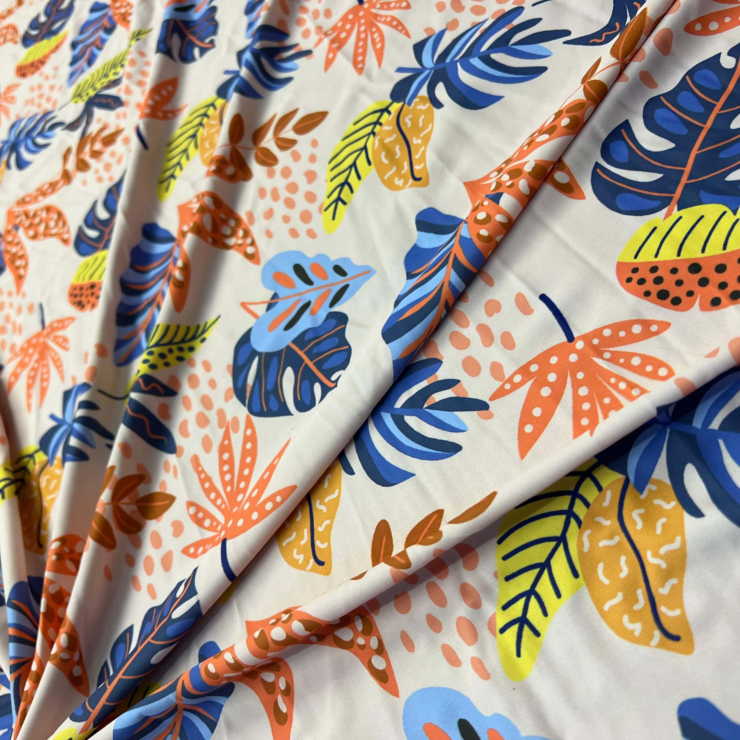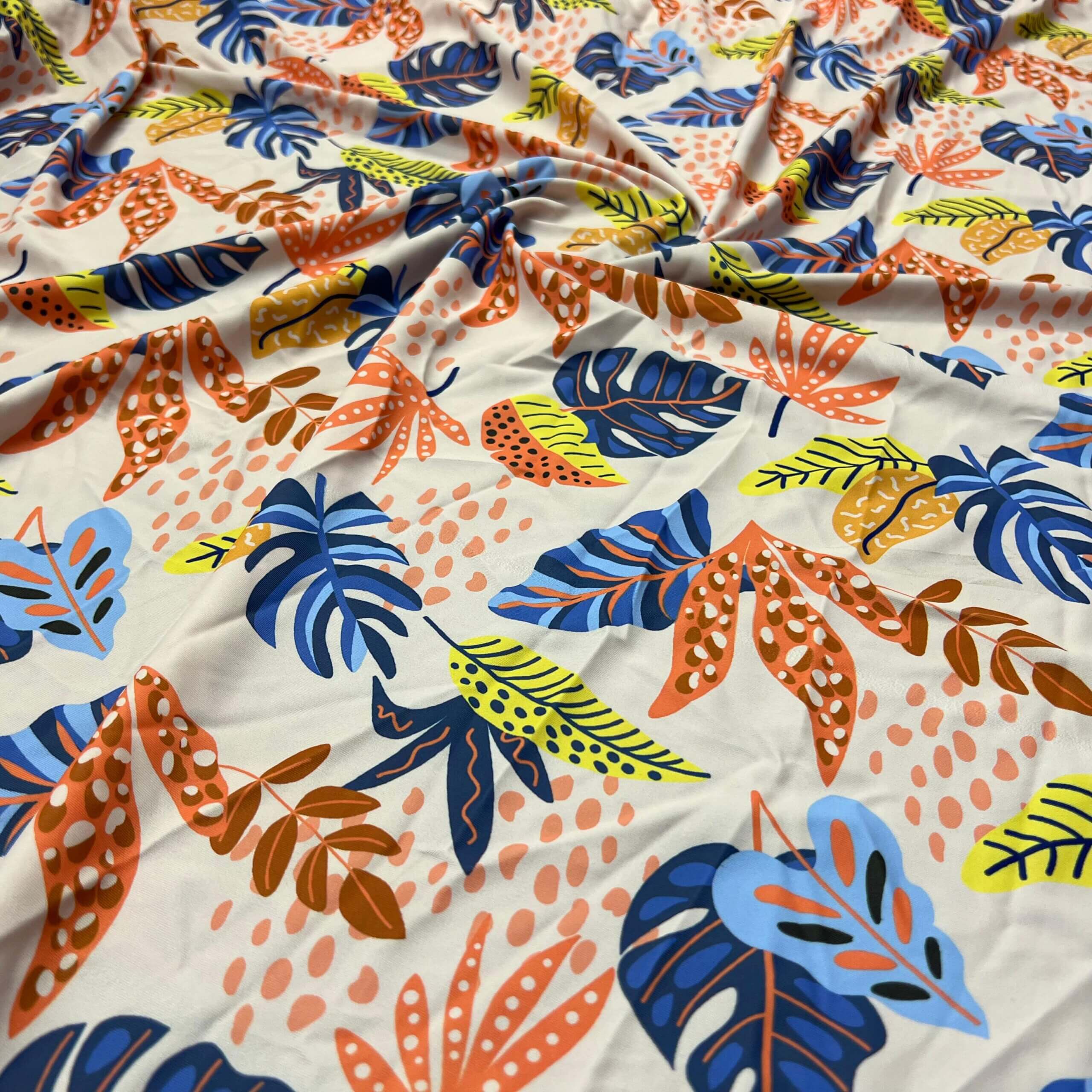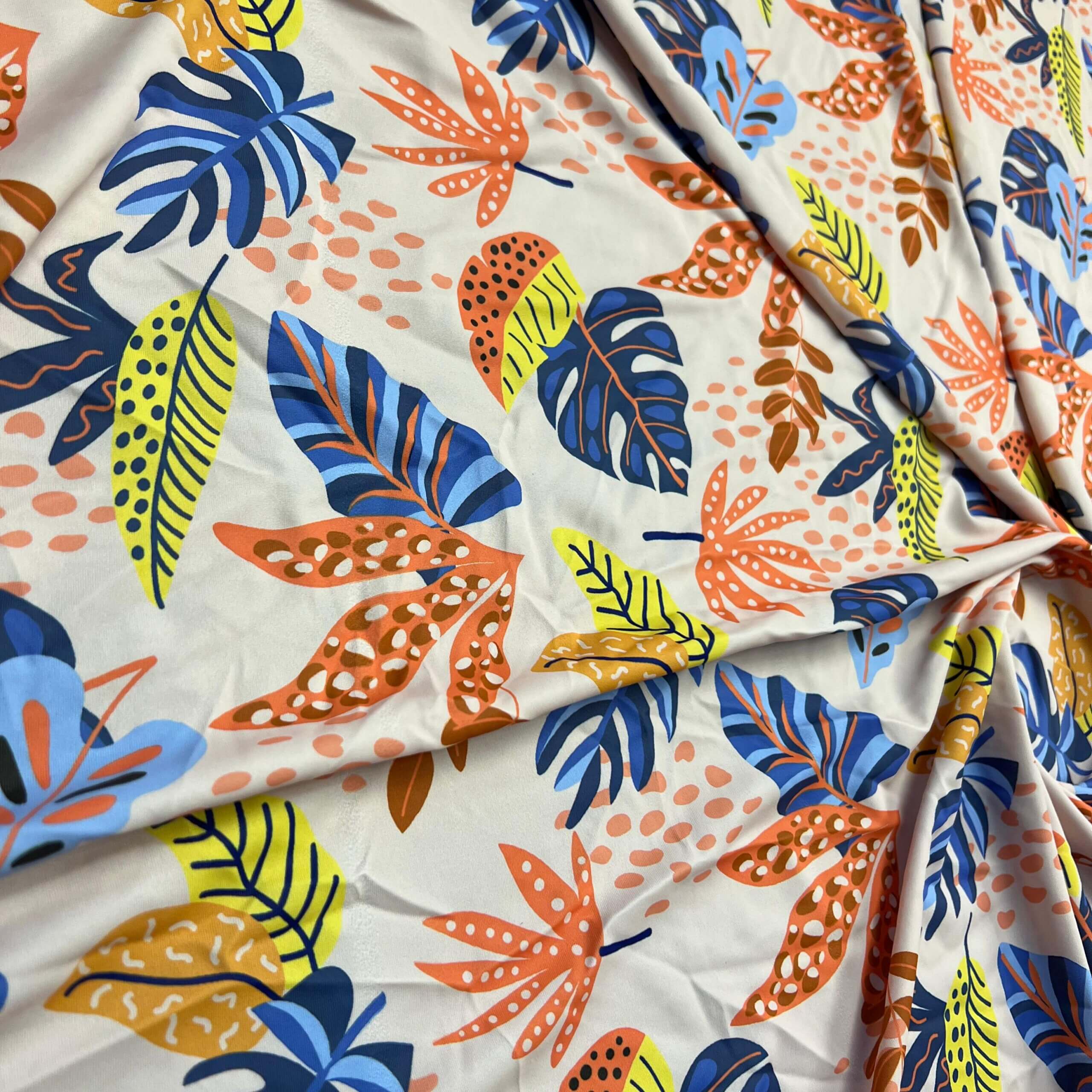 Tropical Summer Leaves Print Nylon Lycra Spandex Fabric 4 Way Stretch By Yard for swimwear dancewear gymwear sportwear dress (203-8)