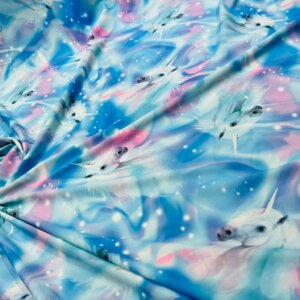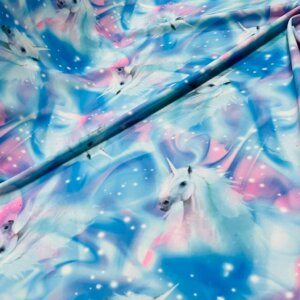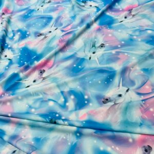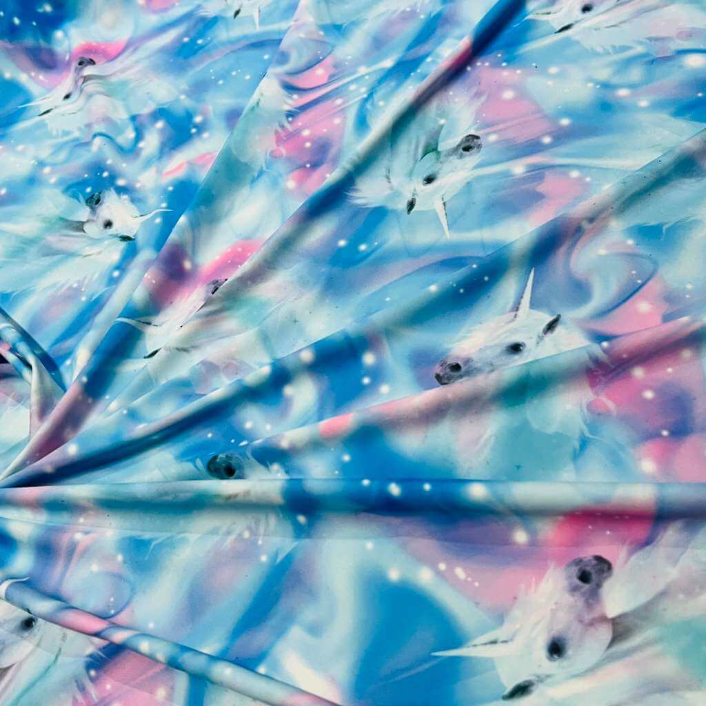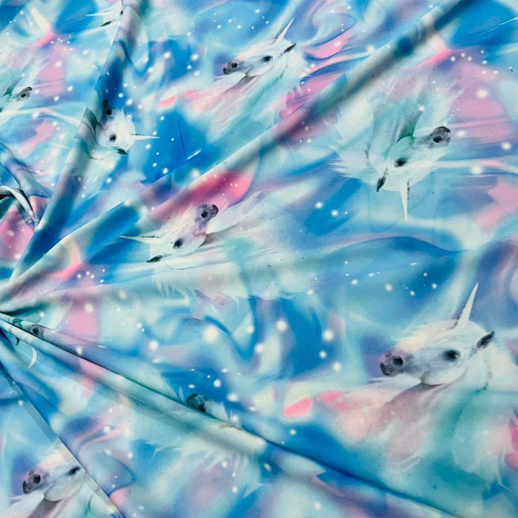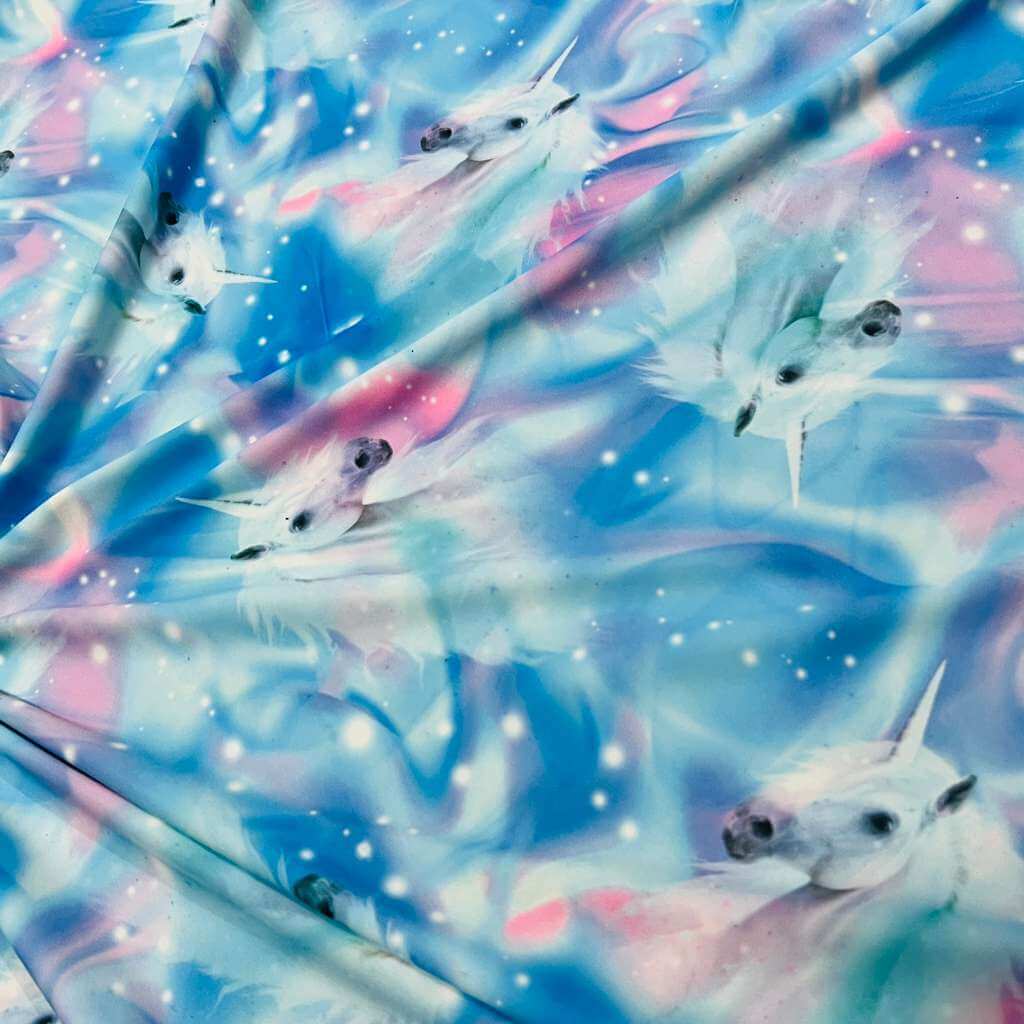Unicorns with Blue Background print Nylon Nylon Lycra Spandex Fabric 4 Way Stretch By Yard for swimwear dancewear gymwear sportwear dress (115-2)(30)