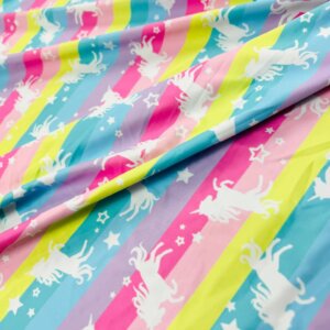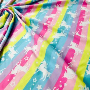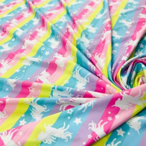 Unicorns with Pastel Lines Print Nylon Spandex Fabric 4 Way Stretch By Yard for swimwear dancewear gymwear sportwear dress skirt (157-13)