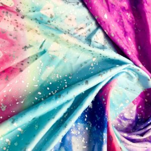 Universe Metallic Silver Foil Metallic Print Nylon Lycra Spandex Fabric 4 Way Stretch By Yard for swimwear dancewear gymwear sportwear dress (242-3)