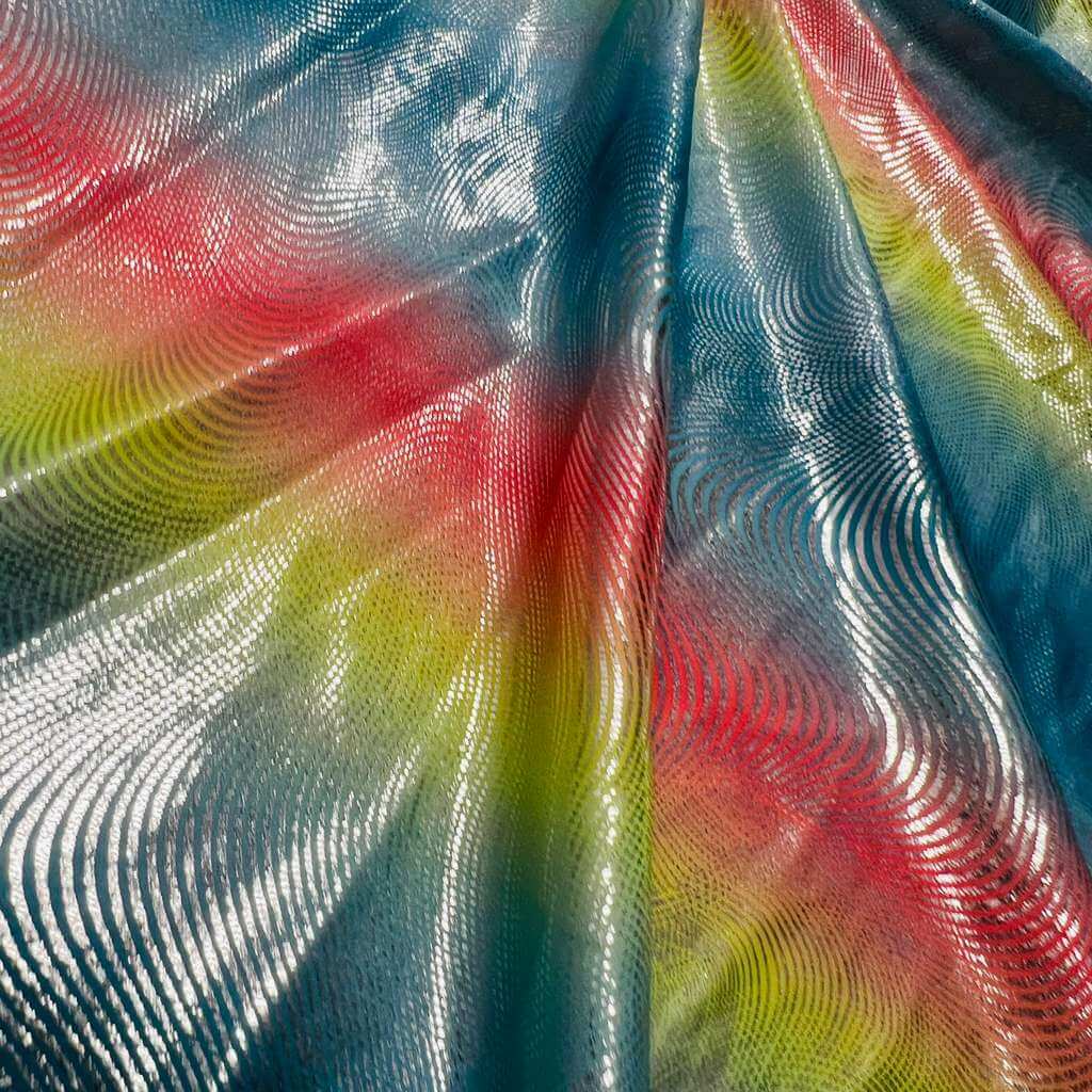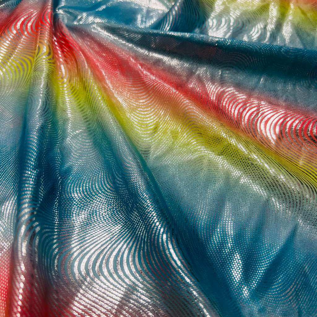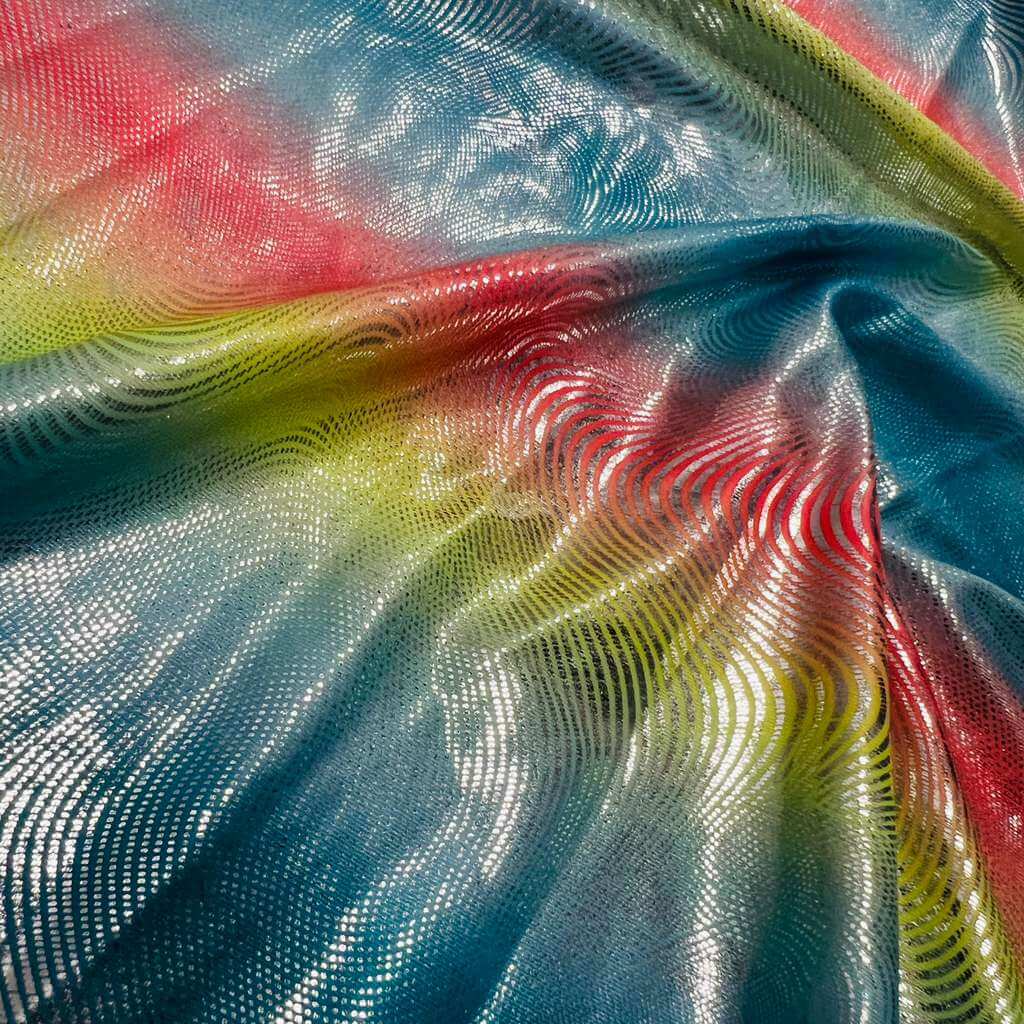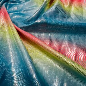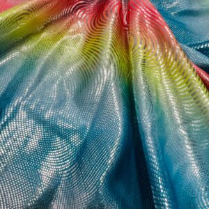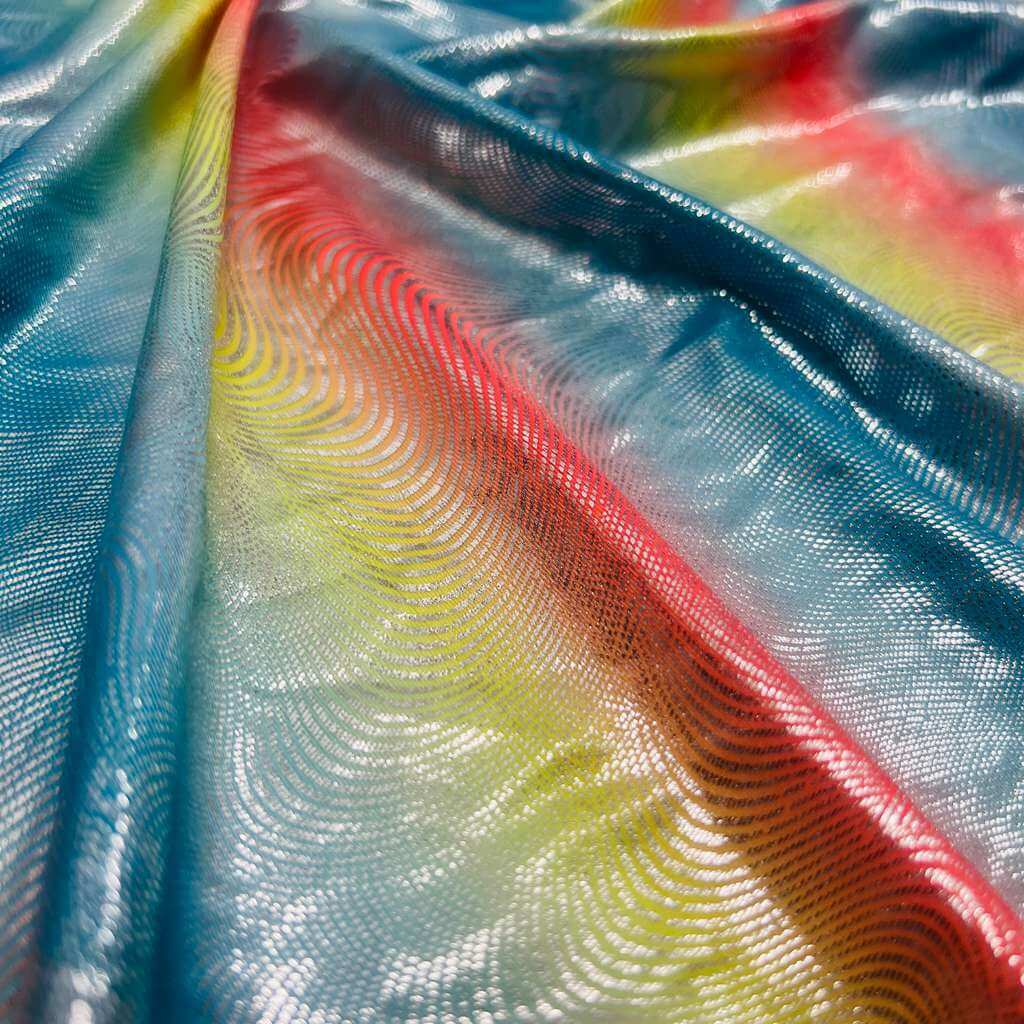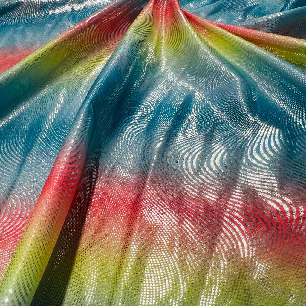 Vibrant Pastel Rainbow Hologram Metallic Foil Nylon Lycra Spandex Fabric 4 Way Stretch By The Yard for swimwear dancewear sportwear dress